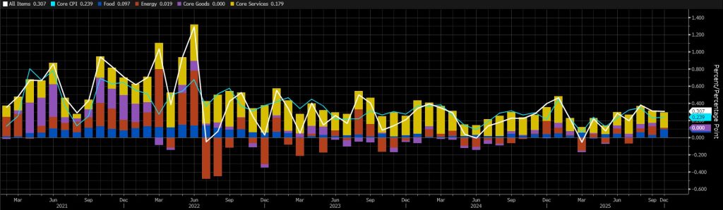 The Bureau of Labor Statistics (BLS) did not publish indicators for October and November because it was unable to collect data for the October 2025 period due to the government shutdown. U.S. consumer prices rose 0.3% month-on-month in December 2025, meeting market expectations. Core CPI, excluding food and energy, rose 0.2%, slightly below expectations of 0.3%. Our forecast is that, although we may see a decline in annual headline inflation, the monthly CPI data for January could come in at 0.41%, slightly above market expectations.