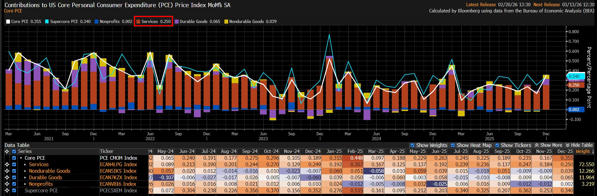 U.S. Monthly Core PCE Data