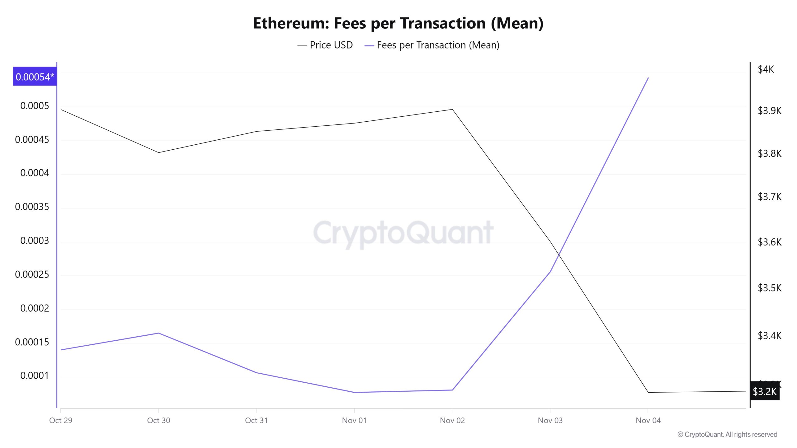 When examining the Ethereum Fees per Transaction (Mean) data for the period between October 29 and November 4, it is observed that the indicator reached 0.000139786680404605 on October 29, the first day of the week.