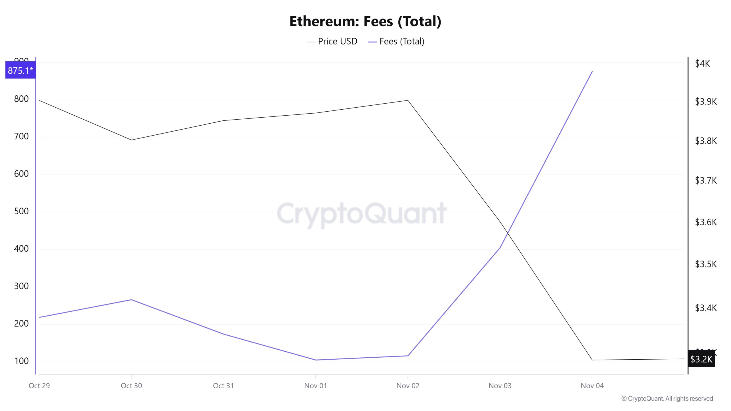 Similarly, when examining the Ethereum Fees (Total) data between October 29 and November 4, it can be seen that on October 29, the first day of the week, the indicator stood at 218.36077346003387.