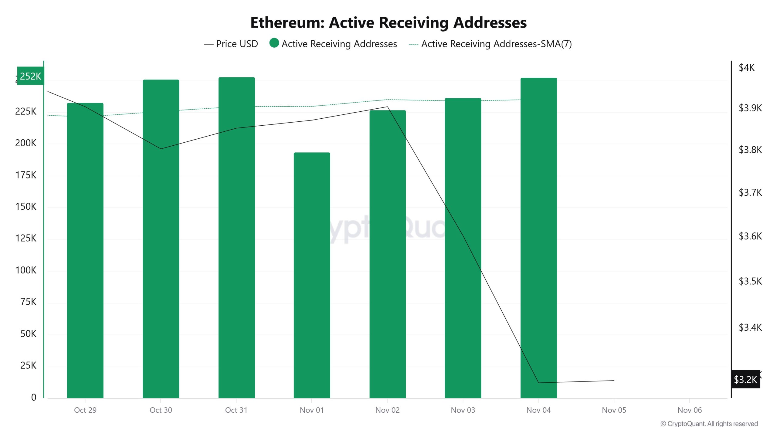 Between October 29 and November 5, while there was no significant increase in active receiving addresses, the price consolidated downward. On the day the price reached its highest level, active receiving addresses reached 252,875, indicating an increase in purchases.