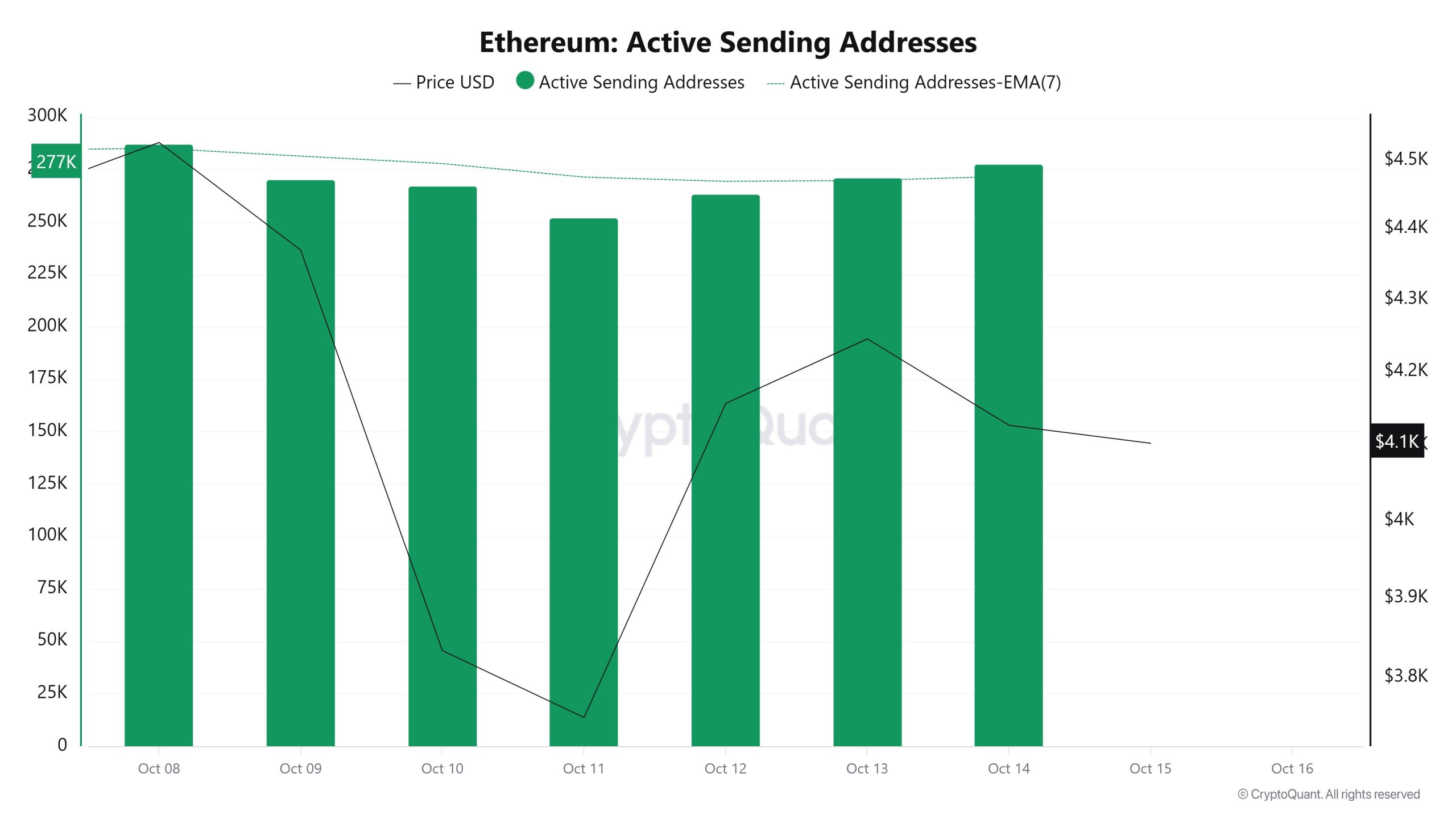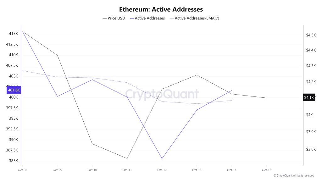 Between October 8 and October 15, a total of 415,596 active addresses were added to the Ethereum network. During this period, the Ethereum price fell from $4,526 to $4,156. Notably, on October 9, when the price reached the active address level, the price began to decline along with the number of active addresses. When examining the 7-day simple moving average (SMA), it is observed that the Ethereum price is generally trending downward.