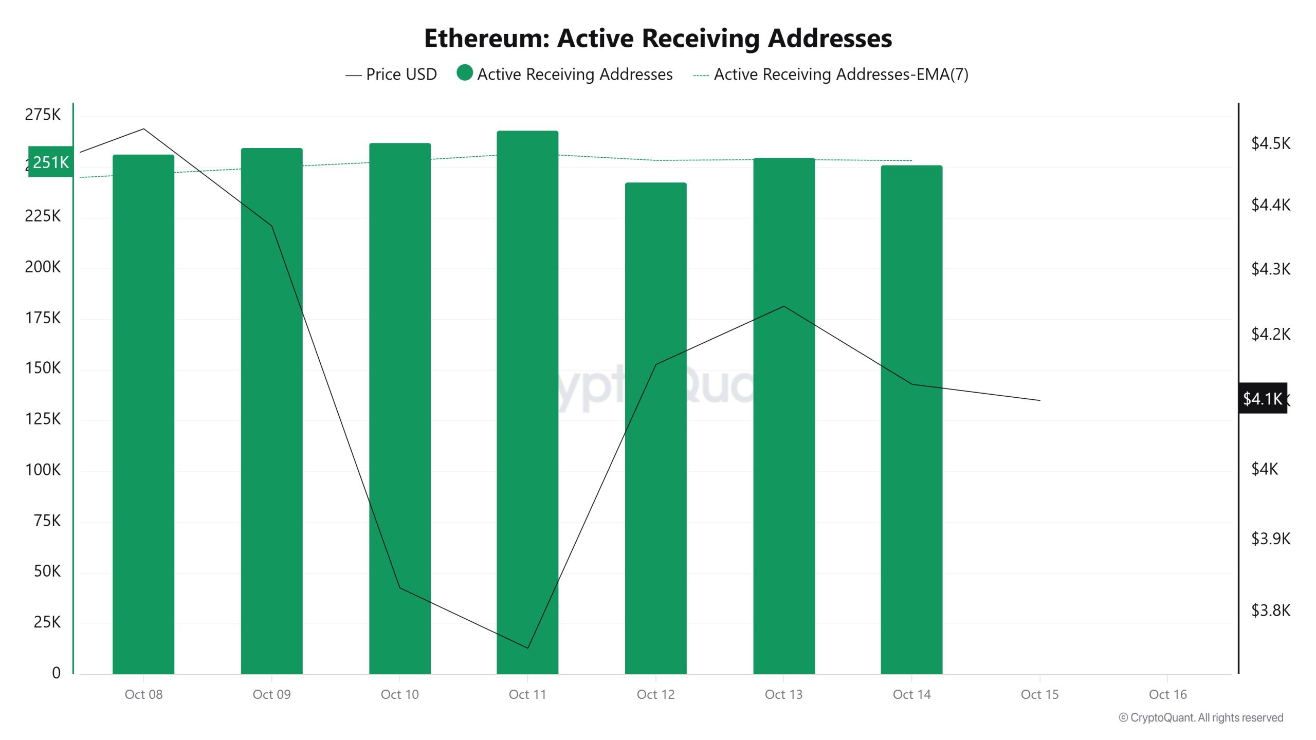 Between October 8 and October 15, while there was no significant increase in active receiving addresses, the price consolidated downward. On the day the price reached its highest level, active receiving addresses reached 268,143, indicating an increase in purchases.