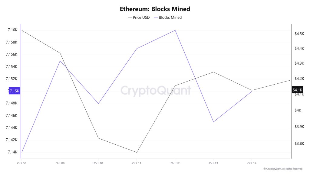 When examining Ethereum block production data between October 8 and 14, an increase was observed throughout the week. While 7,140 blocks were produced on October 8, this number rose to 7,150 by October 14.