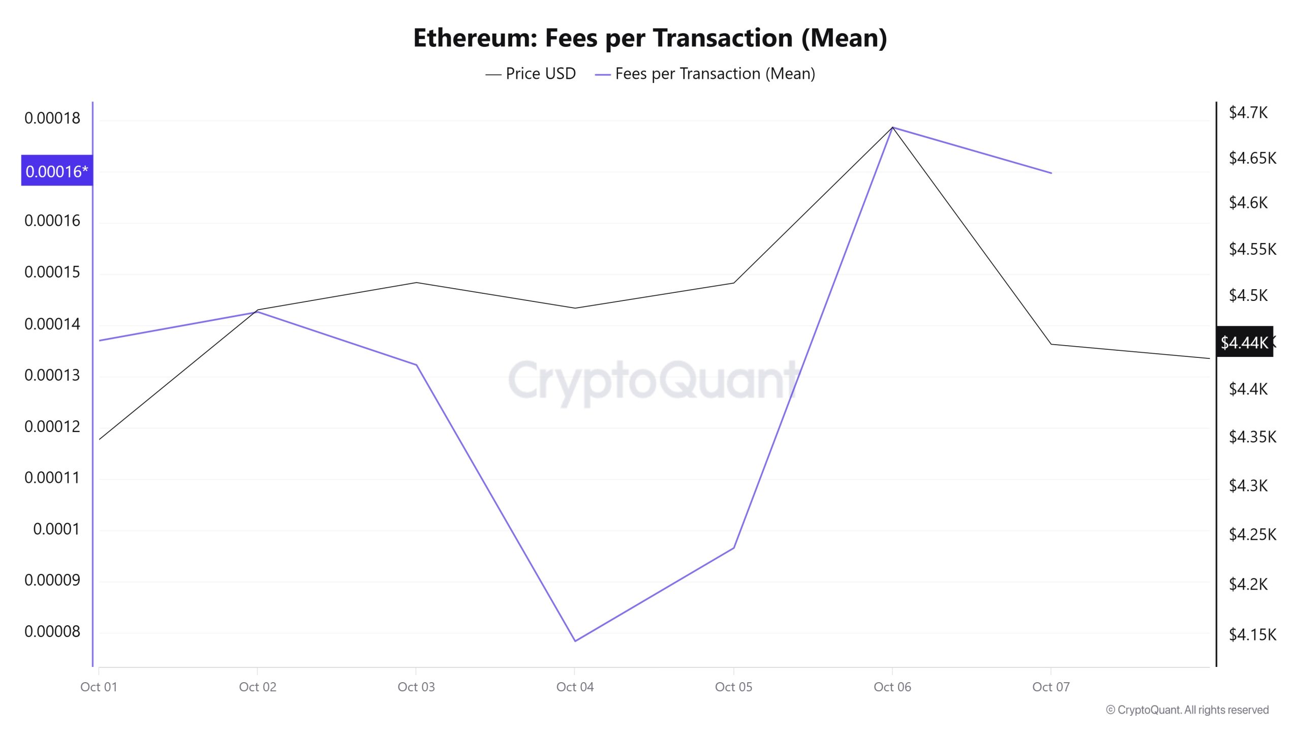In the following days, the Ethereum Fees per Transaction (Mean) indicator resumed its upward trend and closed at 0.000169674421108118 on October 7, the last day of the week.