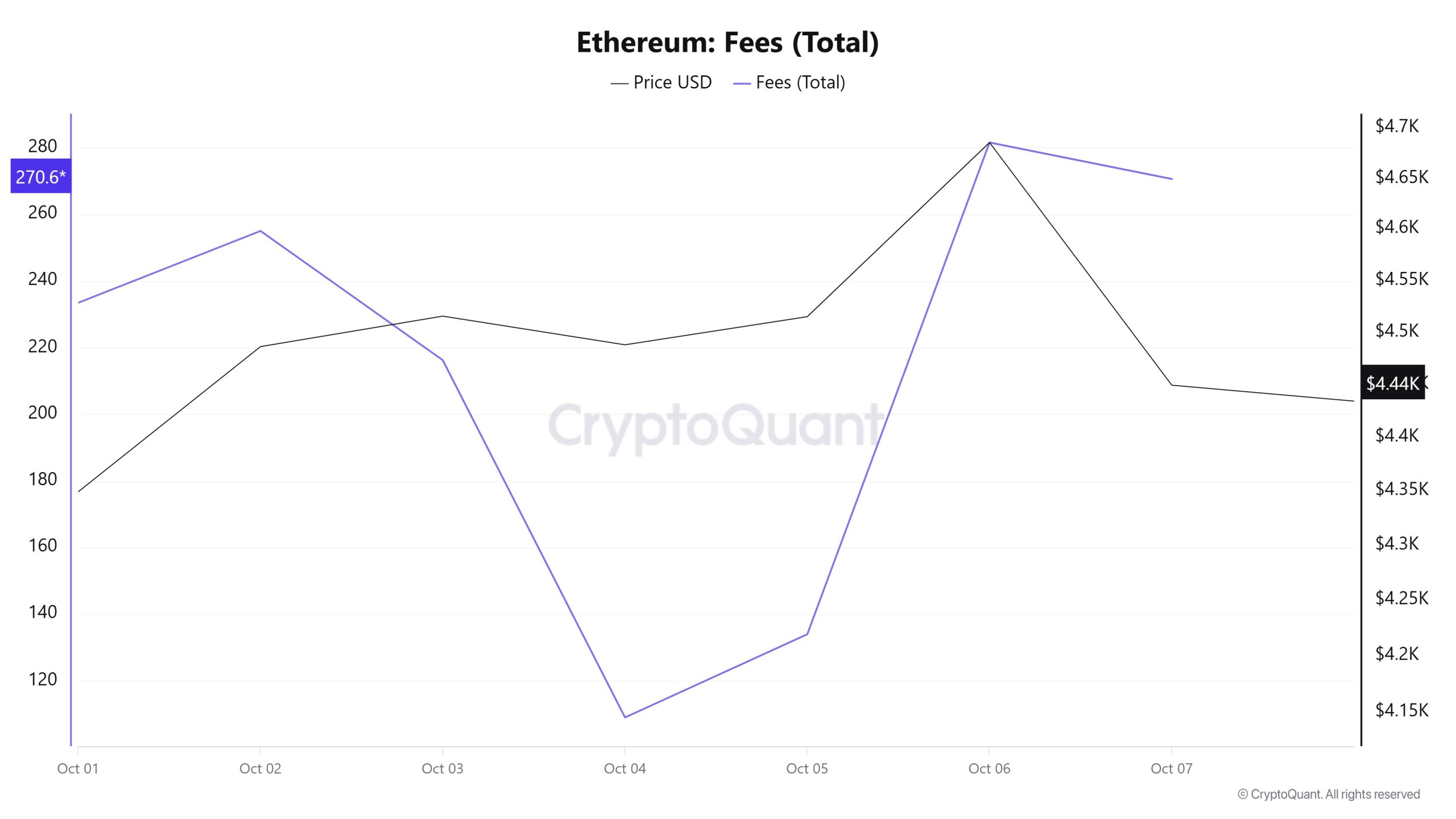 Similarly, an analysis of Ethereum Fees (Total) data for October 1-7 shows that on October 1, the first day of the week, the indicator stood at 233.49663164529105.