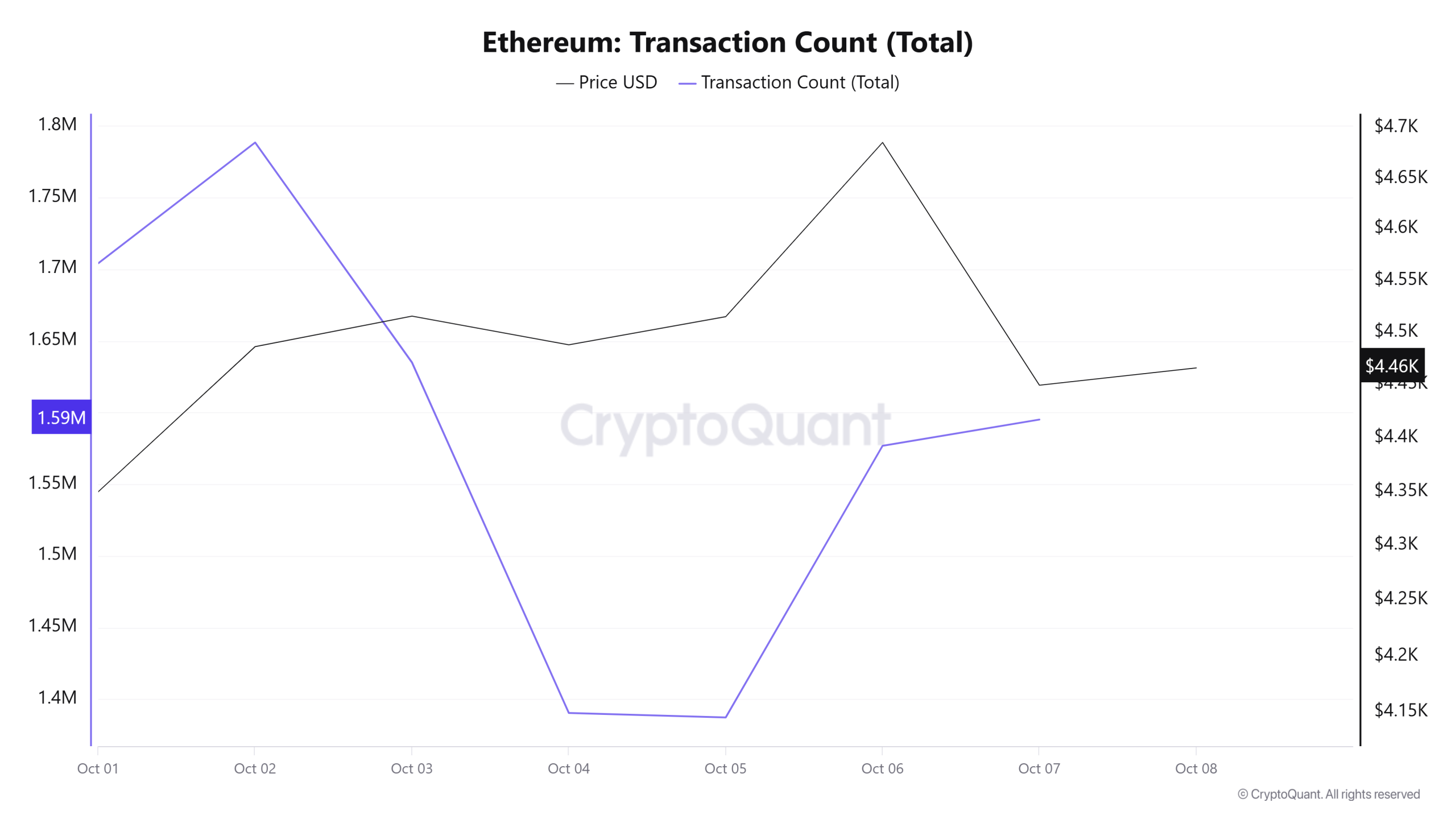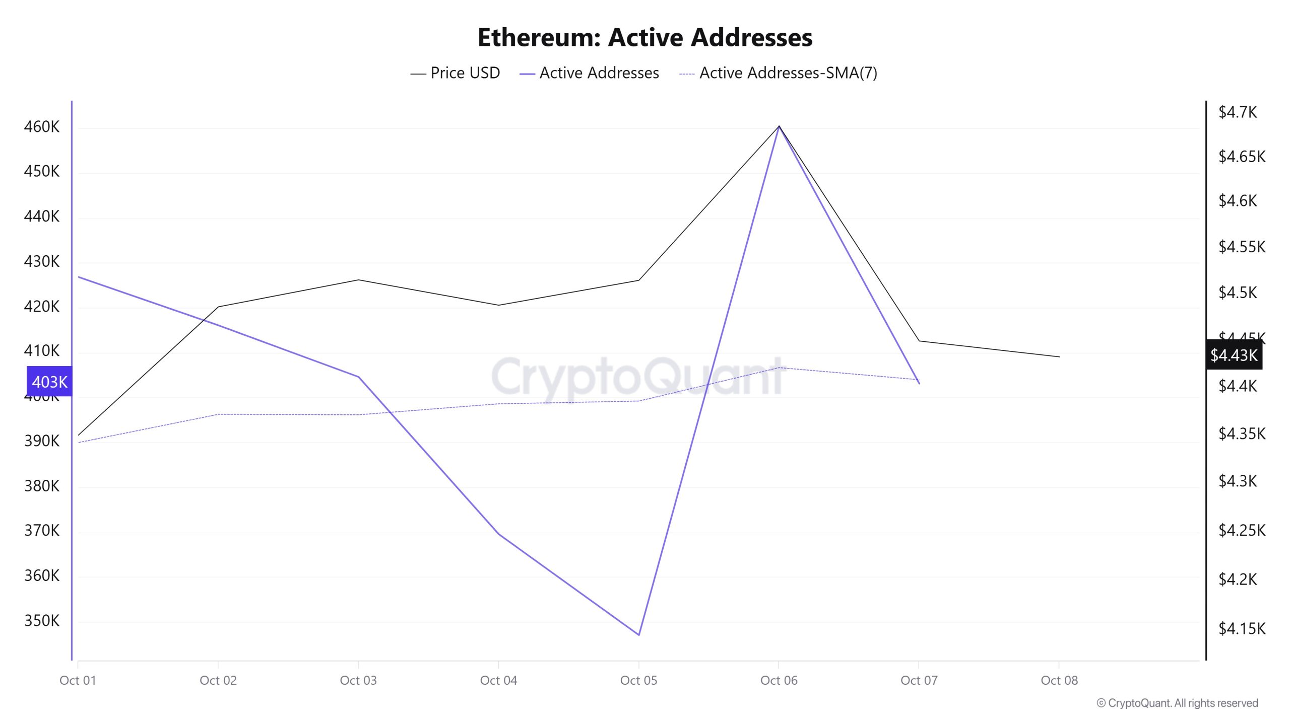 As of October 7, ETH price rose to $4,449 while Staking Inflow increased by 626.0% to 360,758.