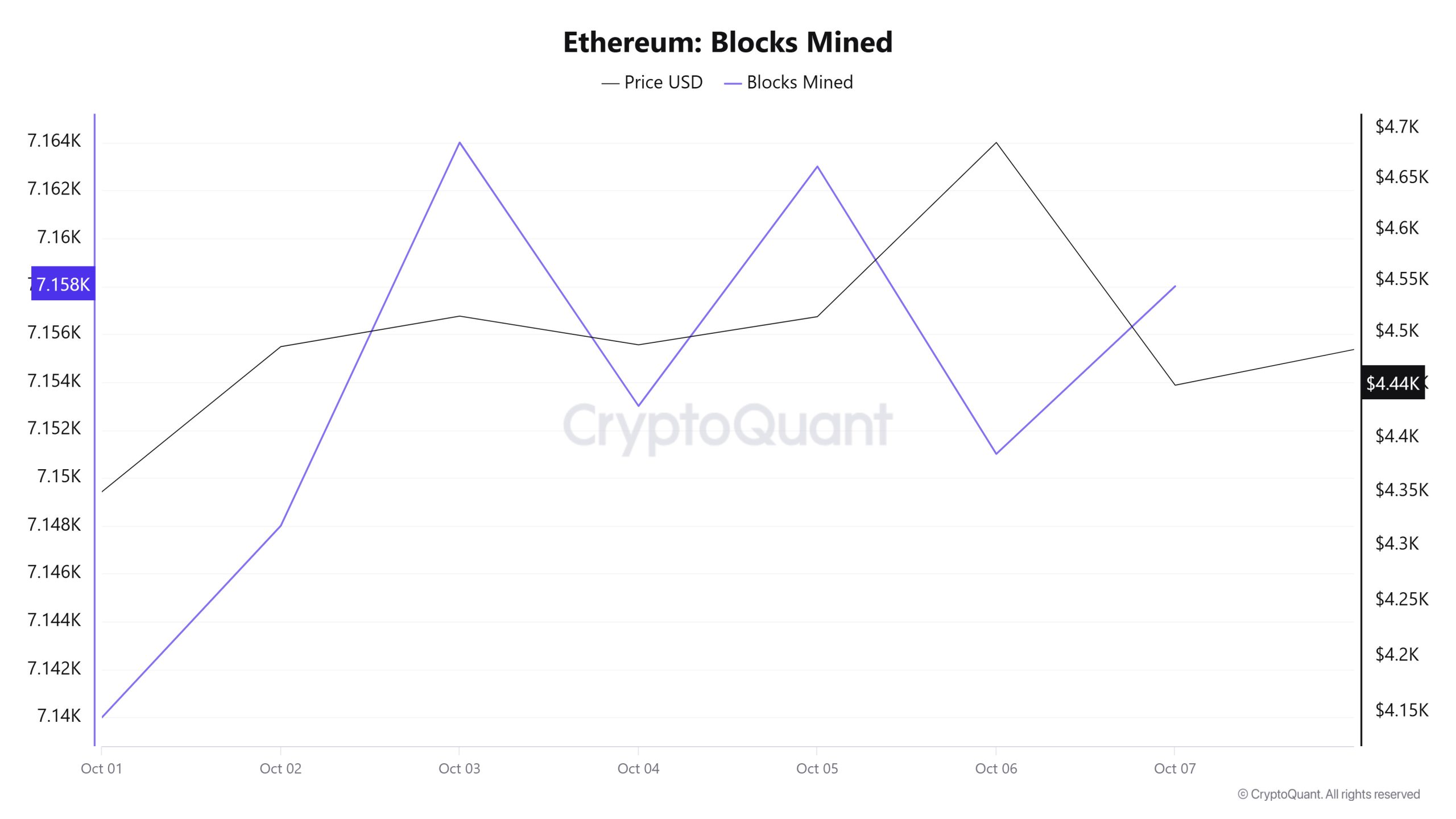 Between October 01 – 07, Ethereum block production data showed an increase throughout the week. While 7,140 blocks were produced on October 01, this number increased to 7,158 as of October 07.
