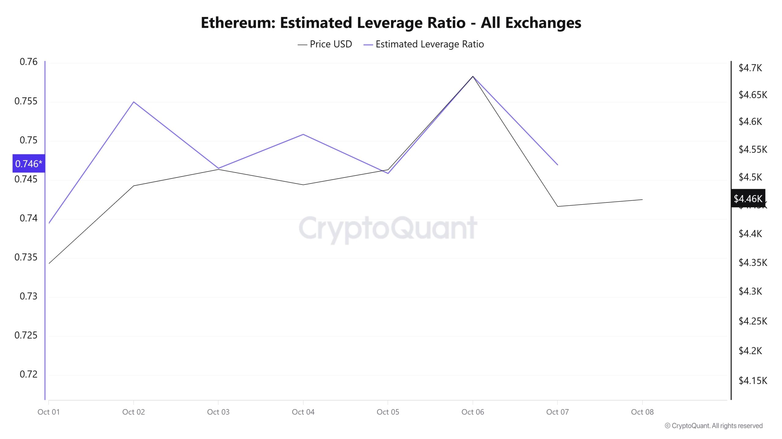 During the 7-day period, the metric moved in a narrow band from the beginning to the end of the process. ELR (Estimated Leverage Ratio), which had a value of 0.739 at the beginning of the process, also formed the lowest point of the process. On October 6, it rose to 0.758, forming the highest point of the process. At the time of writing, it stands at 0.746. A higher ELR means that participants are willing to take on more risk and usually indicates bullish conditions or expectations. It should be noted that these rises can also be caused by a decrease in reserves. When we look at Ethereum reserves, there were 16.18 million reserves at the beginning of the process, while this figure decreased slightly during the rest of the process and is currently seen as 16.10 million. At the same time, Ethereum’s Open Interest is seen as 54.61 billion dollars at the beginning of the process. As of now, the volume increased in the process and the open interest value stood out as $ 60.36 billion. With all this data, the ELR metric experienced a slight increase in the early times of the process, but moved in a narrow band for the rest of the time. The price of the asset moved between $4,155 and $4,750 with all this data. At the moment, the risk appetite of investors and traders is moving in a balanced manner. The increase in the volume of open interest data, which appears throughout the process, and the slight decrease in reserves shows us that the slight increase in the ELR ratio shows us that the risk appetite among investors is slightly formed. As a result, the slight withdrawal of reserves and the increase in open interest have caused an increase in the ELR metric in a narrow band. This indicated that the market was pessimistic, but risk appetite was building.