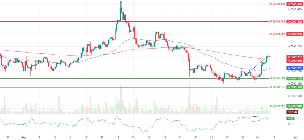 In the technical outlook, short-term strength is giving way to a cautious balance, with volatility declining amid a slowdown in momentum and no significant change in volume, pulling price behavior into a tight band. The persistence above the 200 Exponential Moving Average (EMA), which we highlighted in our last assessment, is maintained, and the price is hovering around the $0.00001260 level. Following the negative divergence (Black Line) between the Chaikin Money Flow (CMF) and the price, a horizontal trend has become apparent, indicating that upward momentum may be limited. While the $0.00001270 and $0.00001350 levels continue to be monitored as intermediate resistance levels, while on the downside, the $0.00001224 level is the first support, and below this level, the $0.00001190 and $0.00001170 levels maintain their current defensive line position.