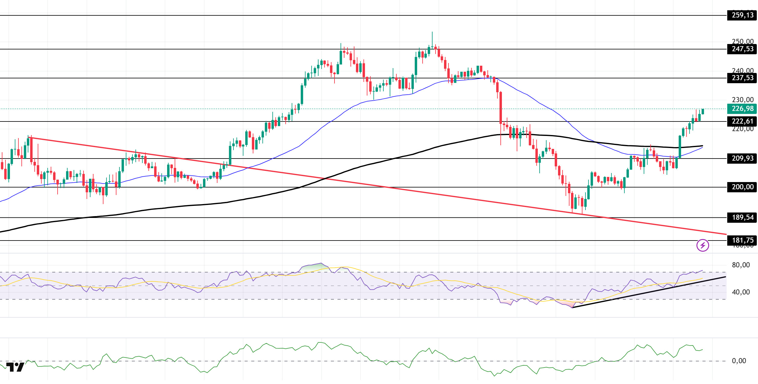 Supports: 222.61 – 209.93 – 200.00