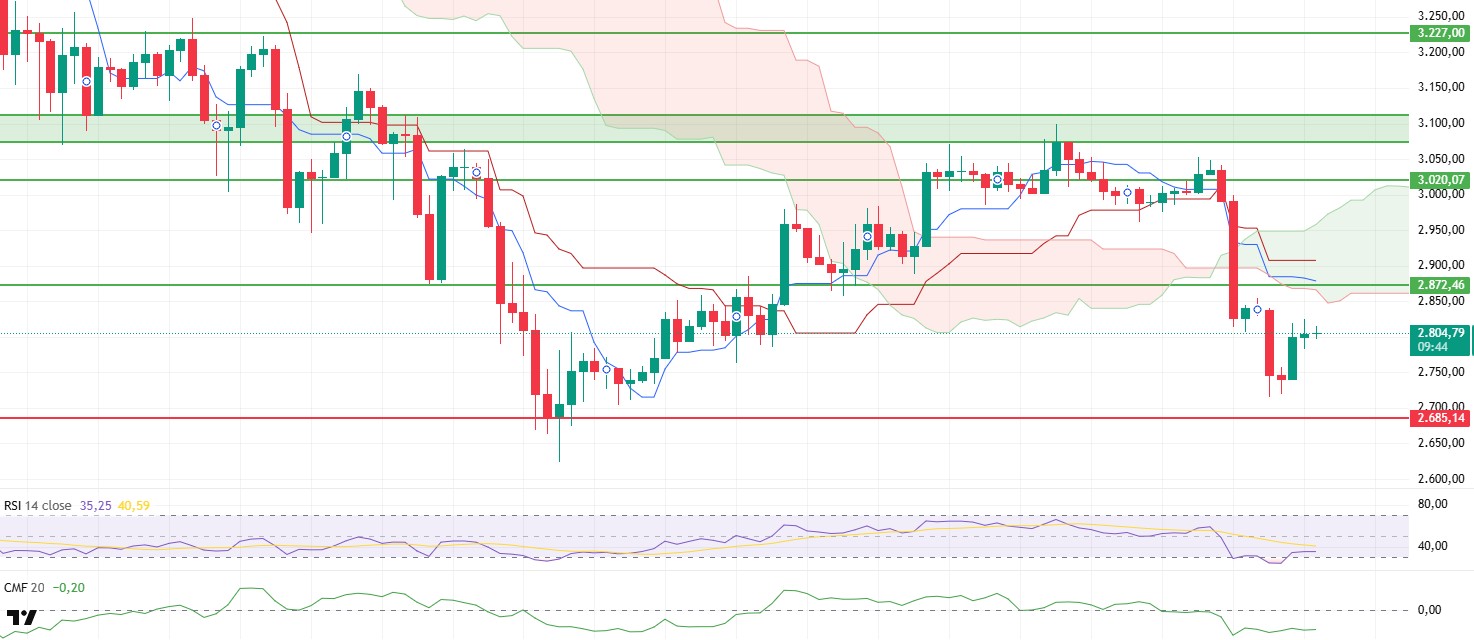 The ETH price continued its decline in line with expectations yesterday evening, falling to $2,716. With the reaction from this region, the price managed to rise above the $2,800 threshold again. However, as the overall structure is still weak, this recovery is fragile for now.