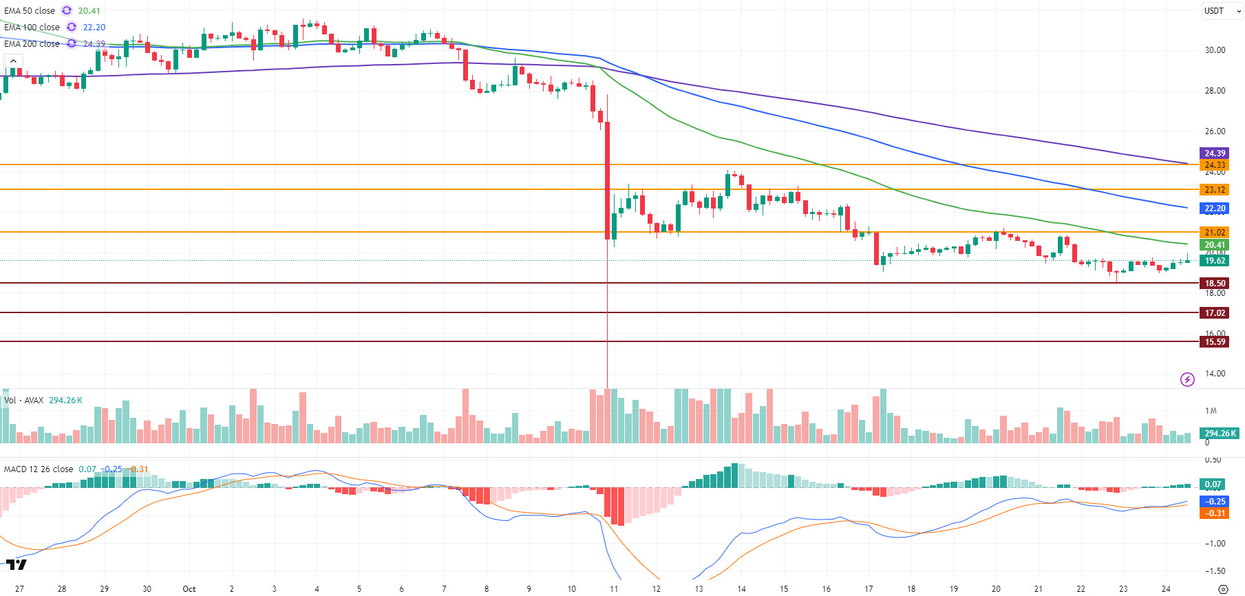 From a technical perspective, the EMA50 and $21.02 resistance levels are prominent in AVAX’s rise. If it closes above these levels, AVAX could test the $23.12 and $24.33 levels in its rise. In the medium term, the EMA200 level stands out as the most critical resistance zone in terms of trend reversal. Conversely, in downward movements, the $18.50 level is the first strong support zone. Closing below this level could lead to increased selling pressure, bringing the $17.02 and $15.59 levels into focus for AVAX’s decline. While the MACD maintains a positive signal in the overall outlook, the trend remains weak due to pricing below EMA levels. Despite the short-term positive impact of US data, closes above $21 and an increase in trading volume remain necessary for sustained gains. Otherwise, AVAX is likely to continue its sideways movement in the $18.50–$19.75 range in the short term.