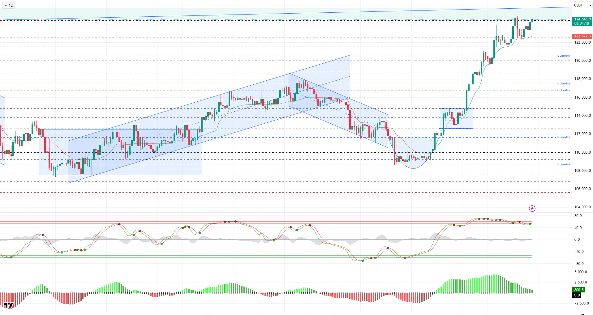 Looking at the technical picture, BTC continued the upward rally it started in the last week of September, attempting a new peak and reaching an all-time high (ATH) of $125,750. BTC, which carried the peak attempts on July 14 and August 13 upwards, continues to consolidate near the peak. Gaining momentum in parallel with the cup formation in price movements, BTC completed the Gartley formation and broke through the $120,500 level, completing a “W” type movement. At the time of writing, it continues to trade at the $124,500 level.