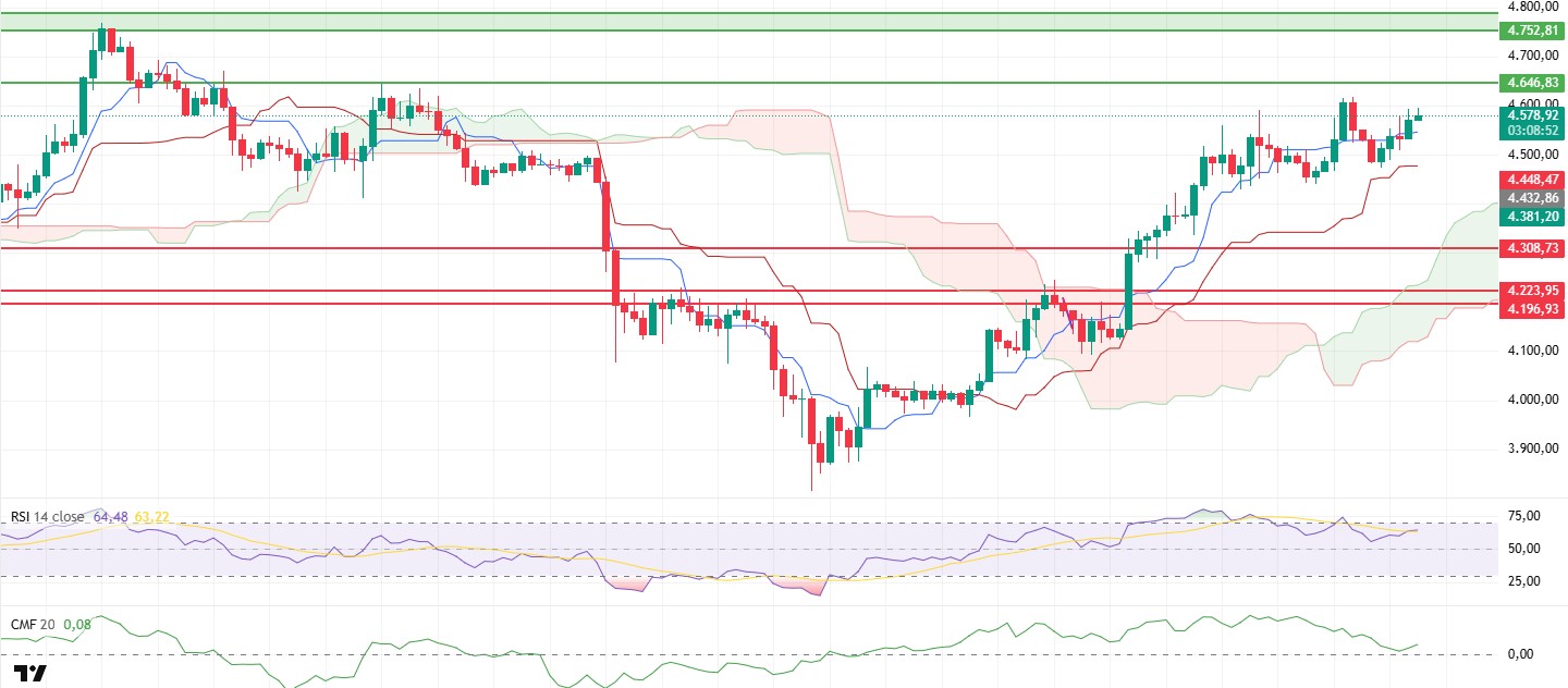 Overall, ETH price is expected to continue moving towards the $4,646 resistance level. However, the fact that the weakness in the CMF indicator has not completely disappeared increases the critical importance of the $4,441 level. The price remaining above this support level indicates that the overall uptrend will be maintained.