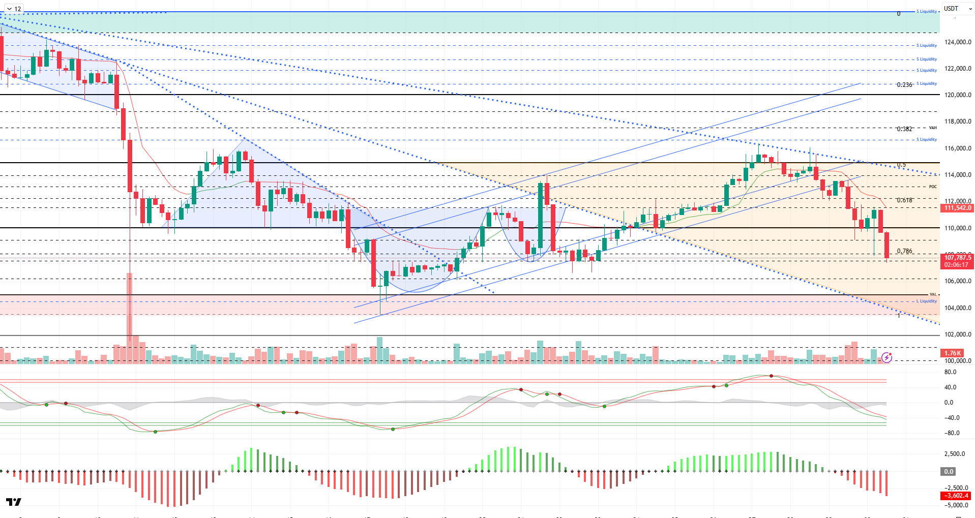 In summary, while the talks between the US and China took place in a constructive atmosphere on the fundamental side, Fed Chairman Powell’s uncertain stance on interest rate cuts next month emerged as a factor weighing on the markets. On the technical side, BTC lost its upward channel and moved into a horizontal band range, then lost the horizontal band range and formed a minor downtrend. In liquidity data, balanced transactions, along with the recent decline, brought the selling level to the fore. In the coming period, 107,500 will be monitored as a critical support point. If this level is lost and selling pressure deepens, we will monitor the 105,000 level, which is the last reference point for holding on to six-digit levels. To discuss a new upward movement, we will wait for the price to regain the 110,000 level.