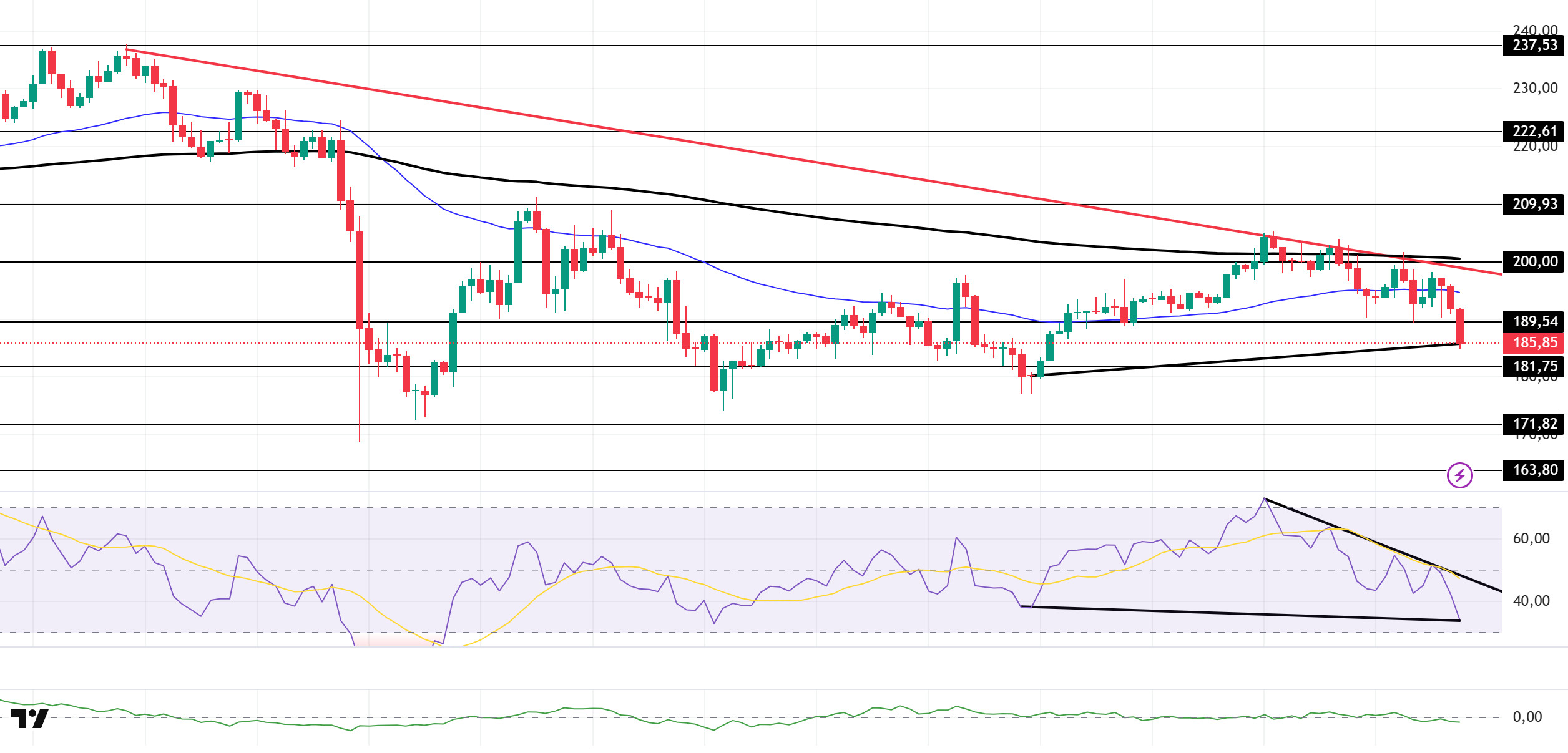 The SOL price experienced a pullback during the day. The asset tested the 200 EMA (Black Line) moving average and the downward trend that began on October 6 as resistance but failed to break through and experienced a pullback. The price, which is currently testing the strong support level of $189.54, may test the $181.75 level if the pullback continues. In the event of an uptrend, the 200 EMA moving average should be monitored.