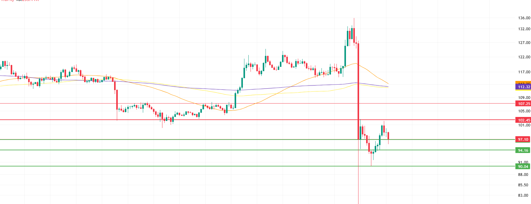 In the event of a potential pullback, the most important level where the price could find support in the first stage would be 96.94. Falling below this level could bring a scenario where declines accelerate. Secondly, the 94.16 level, which could be tested, should be closely monitored. If the reaction from this area is insufficient, the price could potentially pull back to the 90.04 level. It should be noted that if the price falls below all support levels, the decline could deepen and the market could seek a new low.