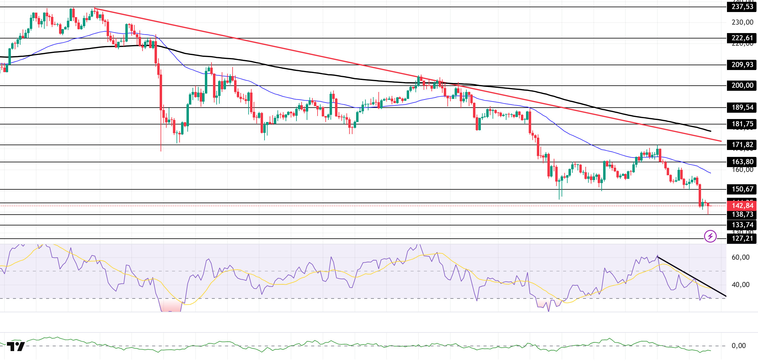 The SOL price deepened its decline, losing approximately 12% in value. The asset remained in the lower region of the downtrend that began on October 6. It also broke below the strong support level of $150.67 and continued to trade below this level. Currently experiencing a slight uptick from the strong support level of $138.73, the price could test the 50 EMA moving average if the uptrend continues. If the pullback deepens, the $127.21 level could act as support.