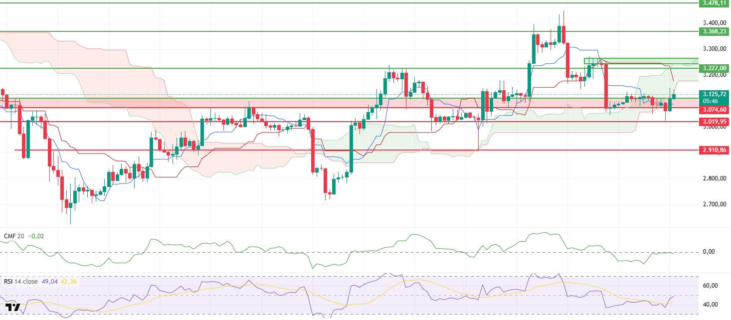 The ETH price retreated to the $3,048 level amid sharp selling on Friday and traded in a narrow range with low volume over the weekend. The price, which fell to the $3,020 level, managed to climb back above the $3,120 level after the weekly close thanks to rebound buying. While this recovery indicates that selling pressure has weakened in the short term, it also signals that the price is still advancing on fragile ground.
