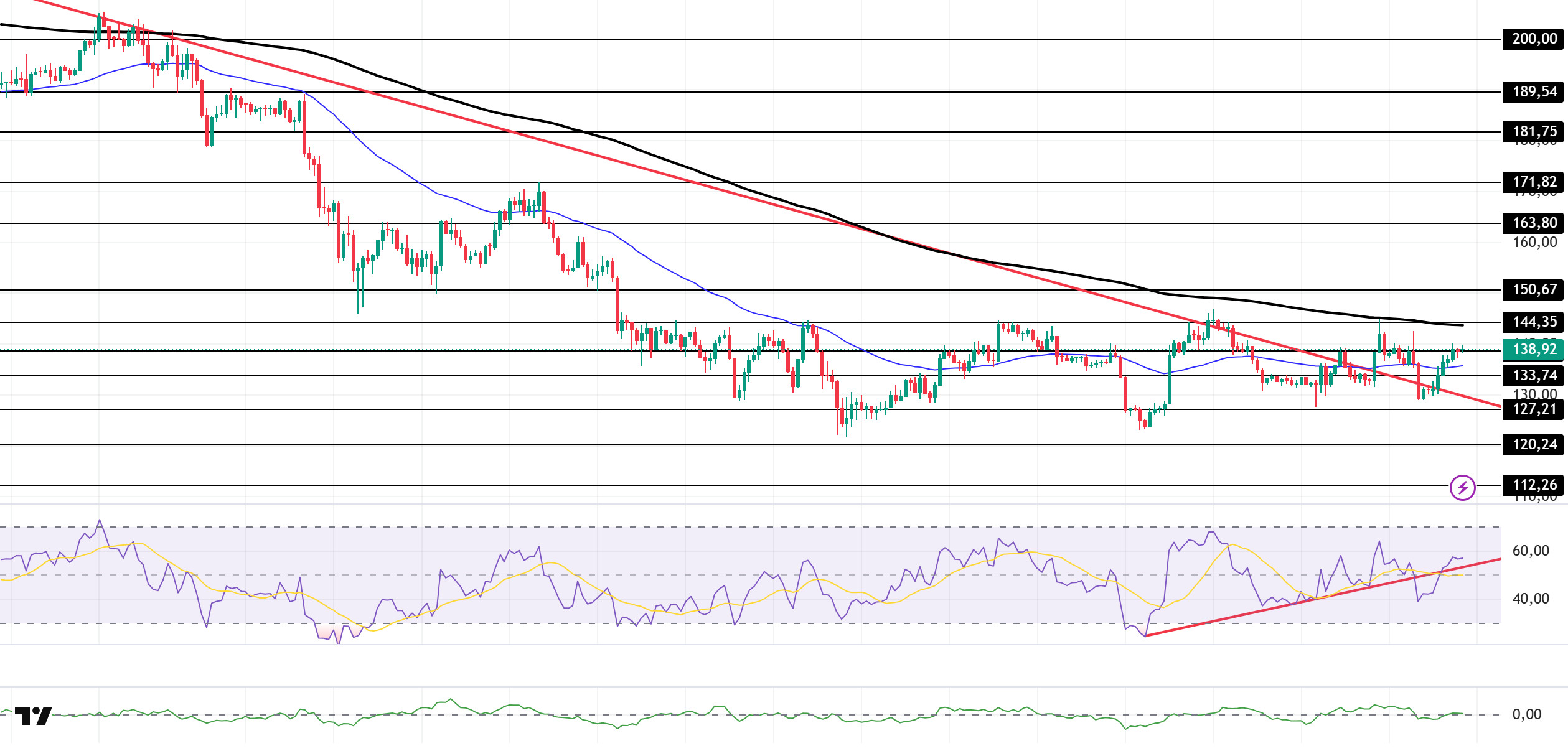 Following the recent downward movement, the price returned to the 13.30–13.50 range, forming a strong demand base in this area. The double bottom formation in the 11.73–11.80 range on the chart remains structurally valid, and we can say that buyers have regained momentum with the price breaking out of the current horizontal squeeze. However, closes below the 13.50 level could weaken the momentum provided by the formation and put the short-term outlook under negative pressure.