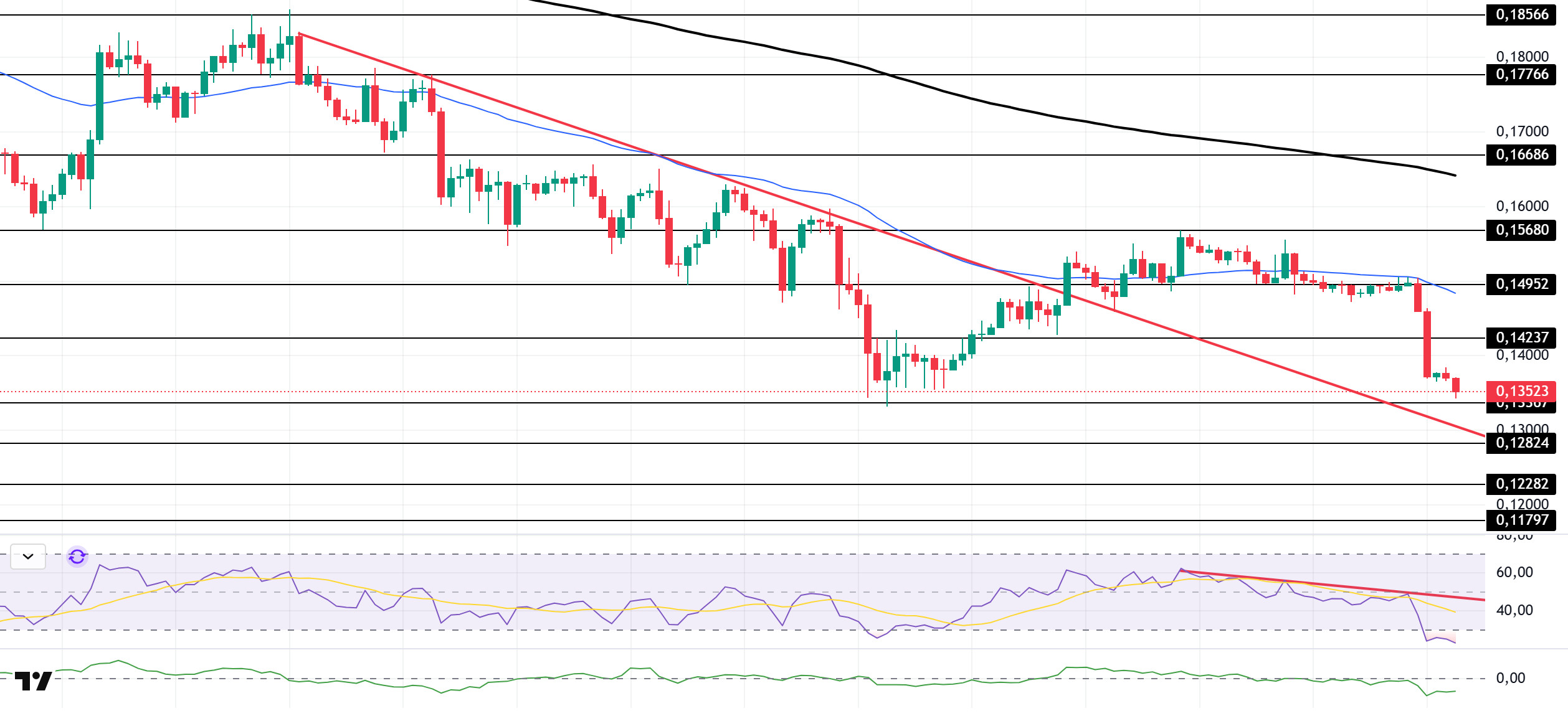 The picture on the momentum side has not changed either. The RSI indicator continuing to move sideways at low levels indicates that a strong reversal signal has not formed in the short term. A much stronger recovery on the momentum side is necessary for the price to respond.