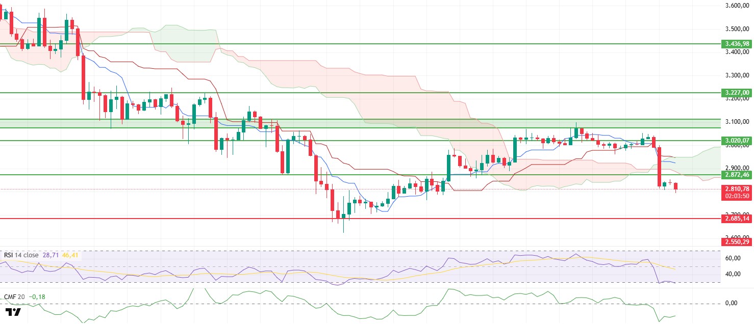 Under these conditions, the pullback is likely to continue for a while longer. The range of $2,720–$2,685 will be monitored as the first important support zone. A break below this support could lead to accelerated selling. On the upside, $2,870 is the first critical resistance level. If prices can hold above this level, a short-term rebound may be possible. However, this would require a significant improvement in both liquidity and momentum. In summary, the market remains under sellers’ control, and Ethereum needs strong buyer interest to reverse its direction and find relief.