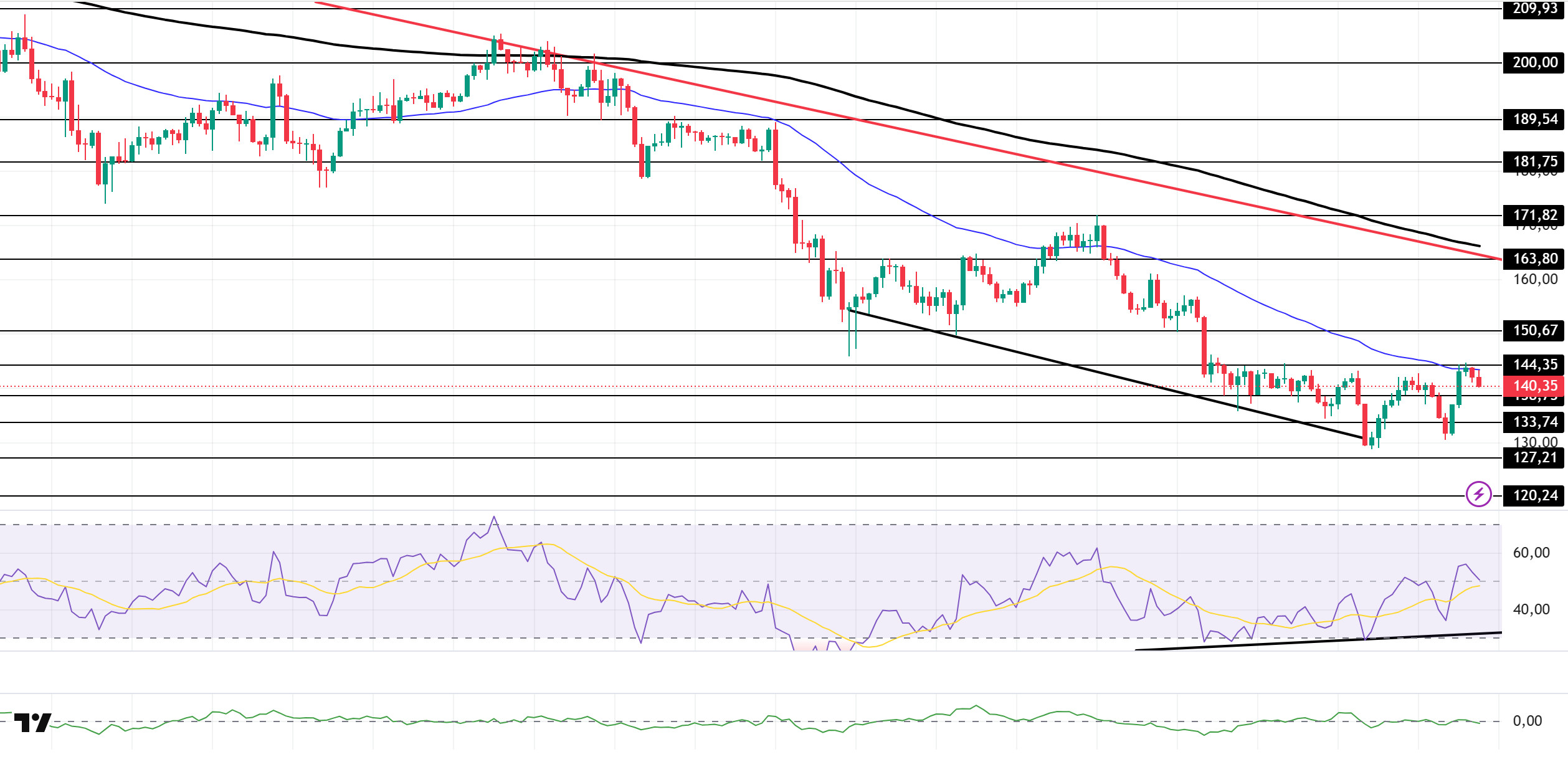 The SOL price showed a slight decline during the day. The asset remained in the lower region of the downtrend that began on October 6. Gaining momentum from the strong support level of $133.74, the asset is currently testing the 50 EMA (Blue Line) moving average as resistance. If the upward trend continues, it may test the downward trend line. In the event of a pullback, the $127.21 level could act as support.