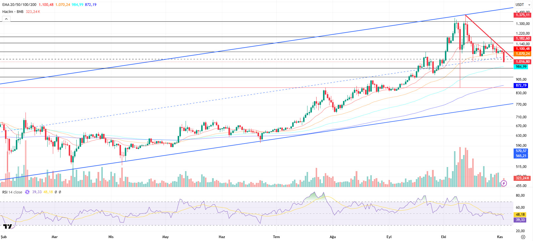 Within the current technical outlook, if selling pressure continues, the price is likely to fall back to the $980 support level. If this level is broken downwards, the $920 and $860 regions stand out as critical support levels. On the other hand, if buying pressure regains strength, BNB is expected to test the $1,080 resistance level first. If it manages to stay above this level, the price could technically move towards the $1,150 and $1,200 levels.
