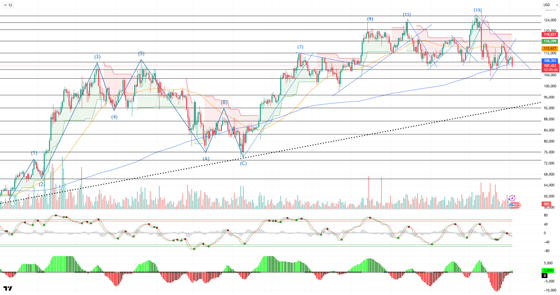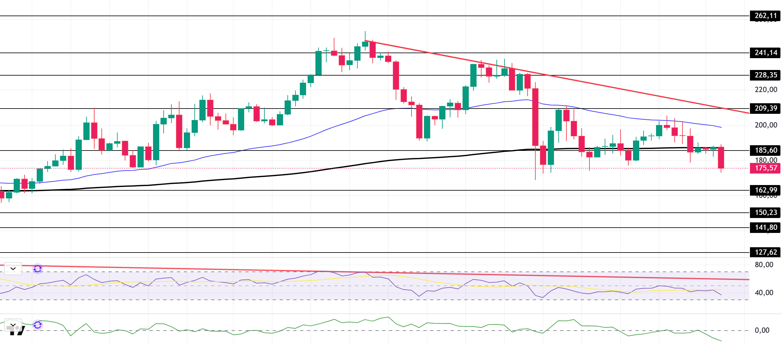 Looking at the daily technical outlook following all these developments, BTC continues its downward trend from the ATH level of 126,200 points, which it reached with its golden cross pattern at the 13th point. The price, which recorded occasional interim rises, fell below the SMA 200 level. After previous attempts to reach new highs, the price, which touched the major uptrend, regained momentum, and currently, there is a 13% gap between it and the trend line. If the price consolidates further, this gap is expected to narrow, potentially triggering a touch.