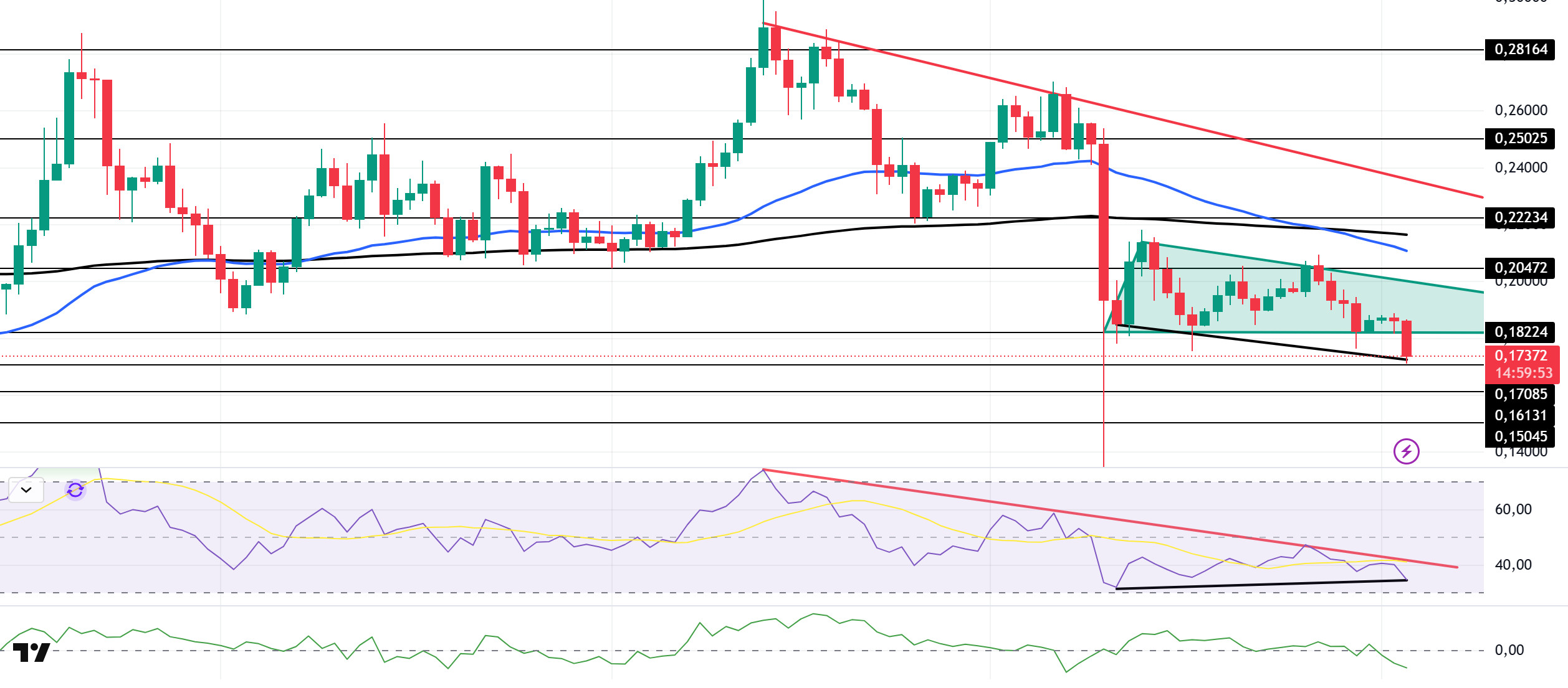 The asset continued to trade below the 50 EMA (Blue Line) and 200 EMA (Exponential Moving Average – Black Line) moving averages. This indicates that the asset is trending downward. On the other hand, the 50 EMA being below the 200 EMA indicates that a “dead cross” formation has begun. This also indicates that the asset has an increased potential to lose value at this point. The Chaikin Money Flow (CMF–20) indicator has moved into negative territory. Money inflows continue to decline. This could push the CMF-20 deeper into negative territory. Looking at the Relative Strength Index (RSI-14) indicator, it remained in the middle of the negative zone. It also continued to trade in the lower region of the downtrend that has been ongoing since September 13. This indicates that selling pressure continues. On the other hand, there is positive divergence. In the event of macroeconomic risks or negative news from the ecosystem, the $0.16131 level can be monitored as strong support. On the other hand, if the upward movement gains strength, the $0.20472 level comes to the fore as the first strong resistance level.