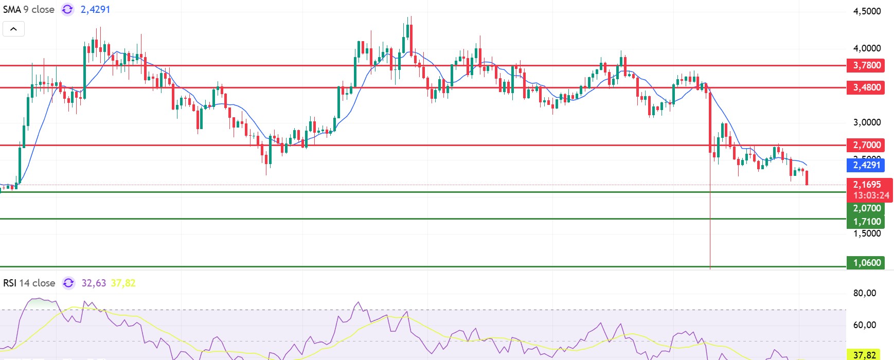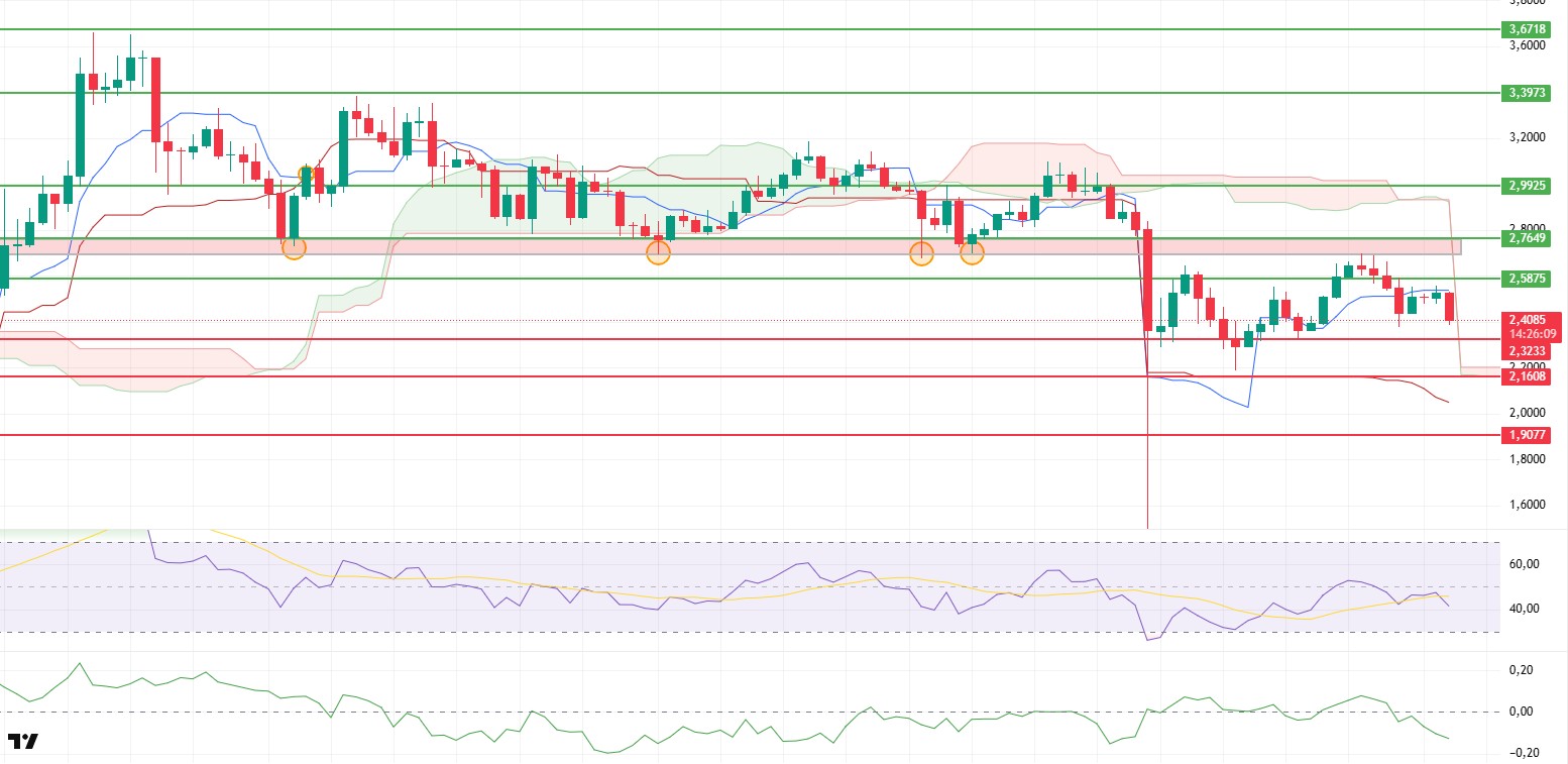 The overall technical outlook remains negative. If the price loses support at the $2.39 level, selling pressure could deepen, and the decline could be expected to continue to the $2.32 level. On the other hand, regaining the $2.58 level could break this negative structure in the short term and trigger an upward reaction. However, unless sustainability is achieved above this level, gains are likely to remain limited.
