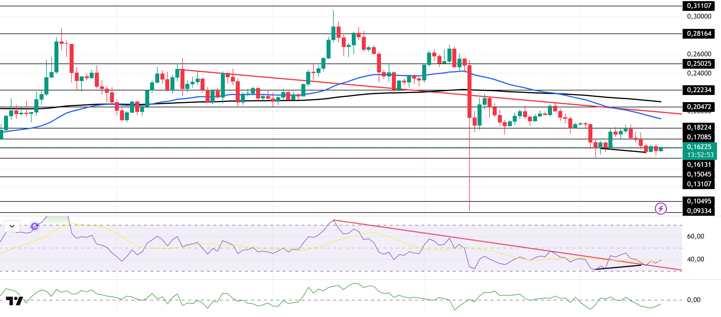The asset continued to trade below the 50 EMA (Blue Line) and 200 EMA (Exponential Moving Average – Black Line) moving averages. This indicates that the asset is in a downward trend. On the other hand, the 50 EMA moving average being below the 200 EMA moving average shows us that the “dead cross” formation is continuing. This also indicates that the asset has an increased potential to lose value at this moment. The Chaikin Money Flow (CMF–20) indicator has moved into negative territory. Money inflows continue to decline. This could push the CMF-20 deeper into negative territory. Looking at the Relative Strength Index (RSI-14) indicator, it remained in the middle of the negative zone. At the same time, it moved into the upper zone of the downtrend that has been ongoing since September 13. This indicates that buying pressure could build. In the event of macroeconomic risks or negative news from the ecosystem, the $0.13107 level can be monitored as strong support. On the other hand, if the upward movement gains strength, the $0.18224 level comes to the fore as the first strong resistance level.