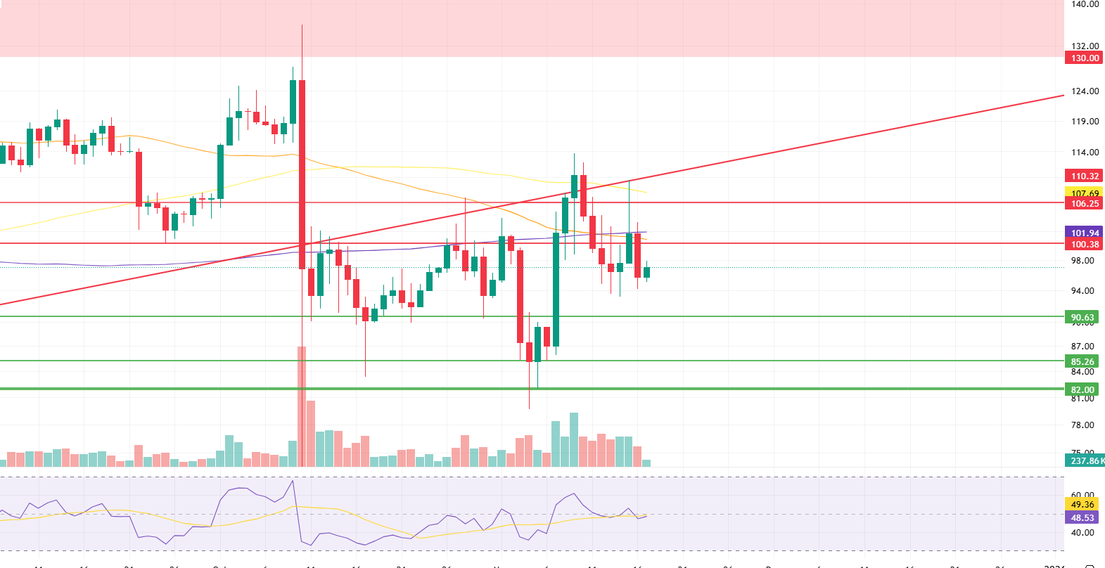 The first minor support level in downward price movements stands out at $90.63. This area can be considered the first line of defense where short-term buyers could re-enter, as it is an area where the price has reacted several times in the past when coming both from below and above. If this support is broken, the second and stronger support zone that could limit the decline is the $85.26 level. In a deeper pullback scenario, the $82.00 level stands out as a critical support area on the weekly chart. This zone coincides with the bottom levels and can be considered an area where a possible bounce could be expected.