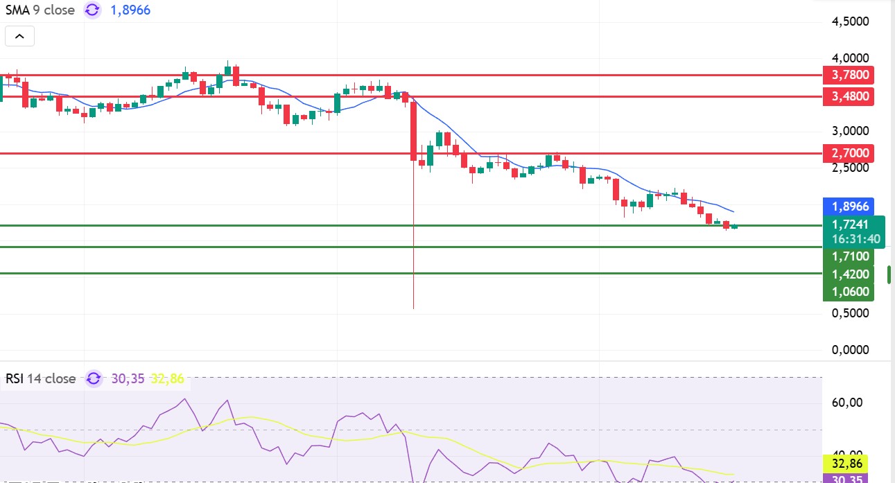 Following recent developments, when we look at Sui’s technical outlook, we see that the price has been moving sideways at around $2.66 on a weekly basis, influenced by fundamental developments. The Relative Strength Index (RSI) is currently in the 32.86 – 30.00 range. This range indicates that the market is trading close to the buy zone; a drop in the RSI to the 35.00 – 30.35 range could signal a potential buying point. If the price moves upward, the $2.70, $3.48, and $3.78 levels can be monitored as resistance points. However, if the price falls to new lows, it could indicate that selling pressure is intensifying. In this case, the $1.71, $1.42, and $1.06 levels stand out as support zones. Based on the trend line, a pullback to $1.71 appears technically possible. According to Simple Moving Averages (SMA) data, Sui’s average price is currently at $1.89. If the price remains below this level, it could signal that the current uptrend may not continue technically.