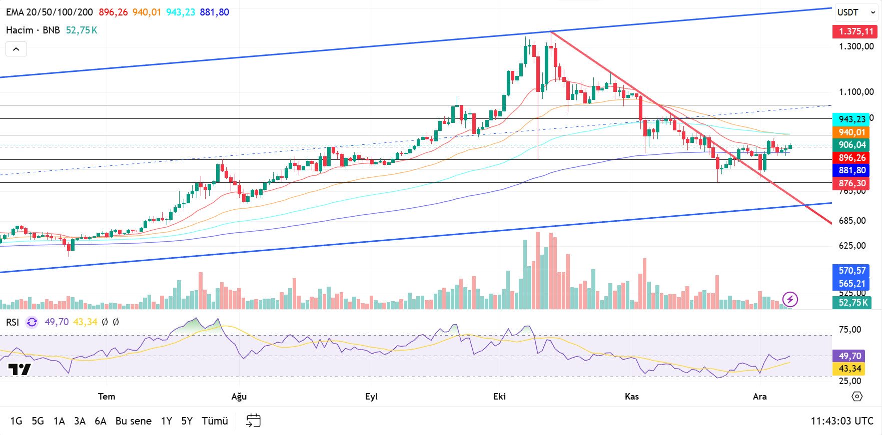 According to the technical picture, if buying appetite is maintained and market momentum strengthens, BNB is expected to retest the $940 resistance level in the first stage. If this level is broken, it is likely that the falling trend line will be exceeded. If the trend is broken and the price remains above this level, a rise towards the $1,000 and $1,050 levels appears technically possible.