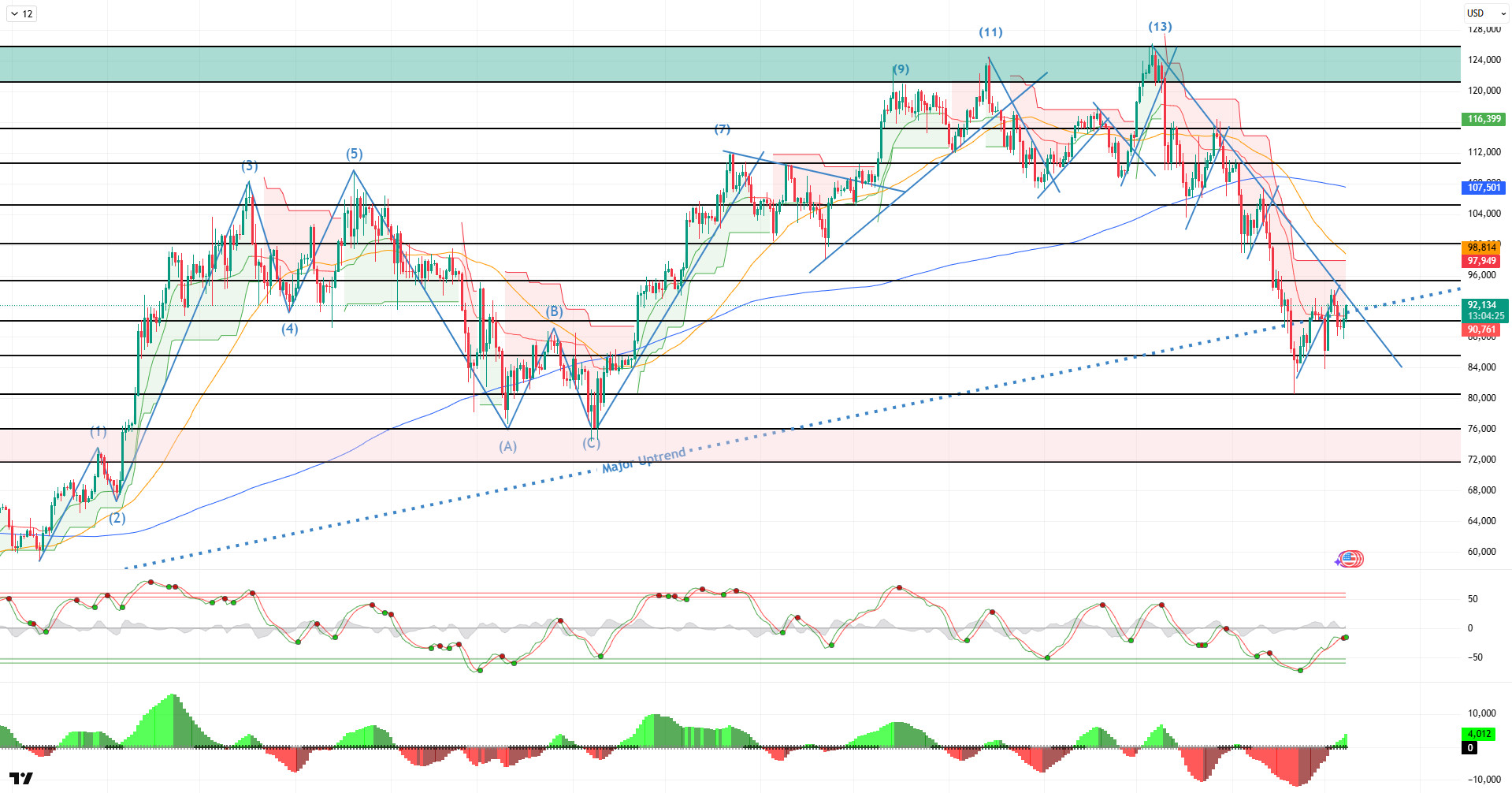 It is also reported that Trump has selected his nominee for Fed chair but has yet to make the announcement. During this process, the Bank of Japan’s (BOJ) statements regarding a possible interest rate hike have also begun to attract the markets’ attention. On the technical side, the price rebounded from a new low of 80,500 and tested the 93,800 level. Liquidity data indicates that the buy-sell levels have become the new target. Following the recent decline, the price could potentially rebound if it breaks above the falling trend line. In this context, if the 93,000 level is breached, the 98,000 level will be targeted. If the Fed uses a hawkish tone in its statements, the 85,000 level will be monitored as the last reference point before the price tests the double bottom at 80,000.