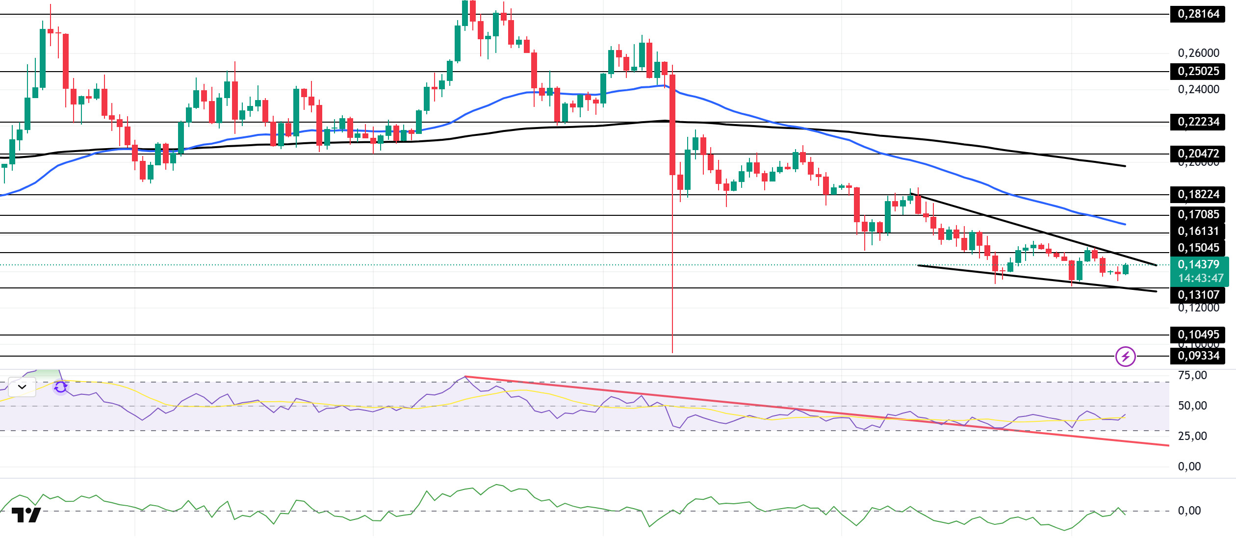 After the sharp decline on October 10, LINK continued its retreat, forming a gradual downtrend with a low-low, low-high pattern for about two months. However, the price’s strong rebound from the $11.61 level on November 21 was an important signal that changed the short-term outlook. Although the price retested this low level, it did not produce a new low below it and rose above the $14 level with strong buying. While this move is relatively small in structural terms, we can say that it formed a clear double bottom pattern on the chart. This formation supports the positive short-term outlook while also activating our medium-term expectation of a falling wedge formation, ensuring that the overall structure evolves into a positive outlook.
