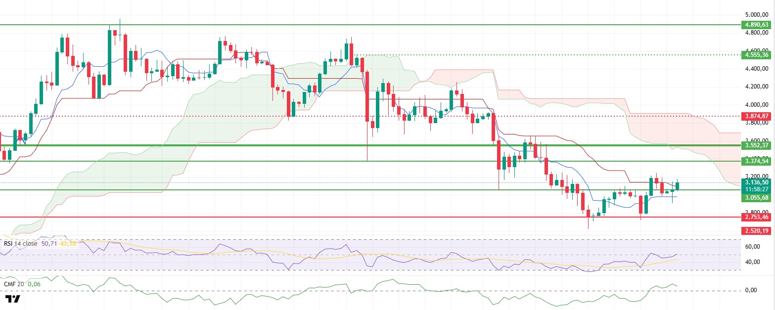 On the Relative Strength Index (RSI) side, although we see short-term fluctuations in the middle band, we see a structure in line with our technical structure and are within the positive zone (50). Therefore, not falling below this level could increase risk appetite and strengthen the upward momentum.