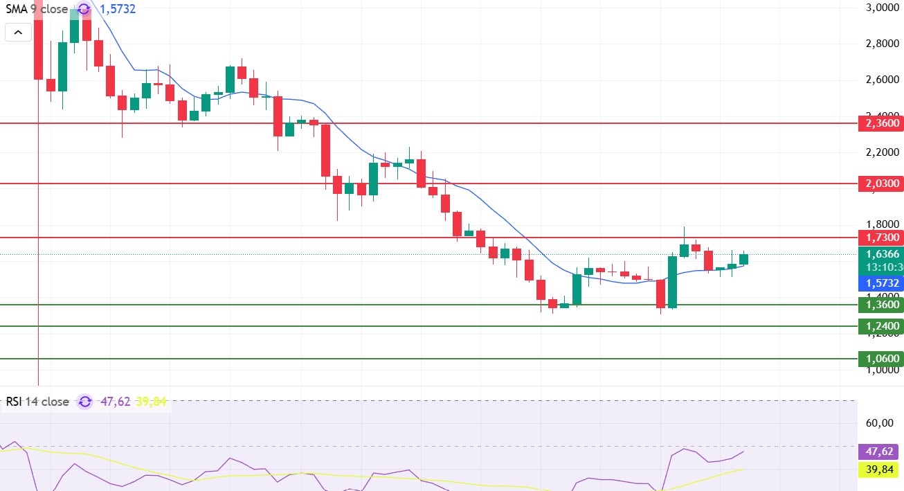Following recent developments, when we look at Sui’s technical outlook, we see that the price has been moving sideways at around $1.63 on a weekly basis, influenced by fundamental developments. The Relative Strength Index (RSI) is currently in the range of 47.62 – 39.84. This range indicates that the market is trading close to the buy zone; the RSI continuing in this range between 40.00 – 45.00 could signal a potential buying point. If the price moves upward, the resistance levels of $1.73, $2.03, and $2.36 can be monitored. However, if the price falls to new lows, it may indicate that selling pressure could deepen. In this case, the support levels of $1.36, $1.24, and $1.06 come to the fore. Based on the trend line, a pullback to $1.06 appears technically possible. According to Simple Moving Averages (SMA) data, Sui’s average price is currently at $1.57. The price remaining above this level indicates that the current uptrend could technically continue.