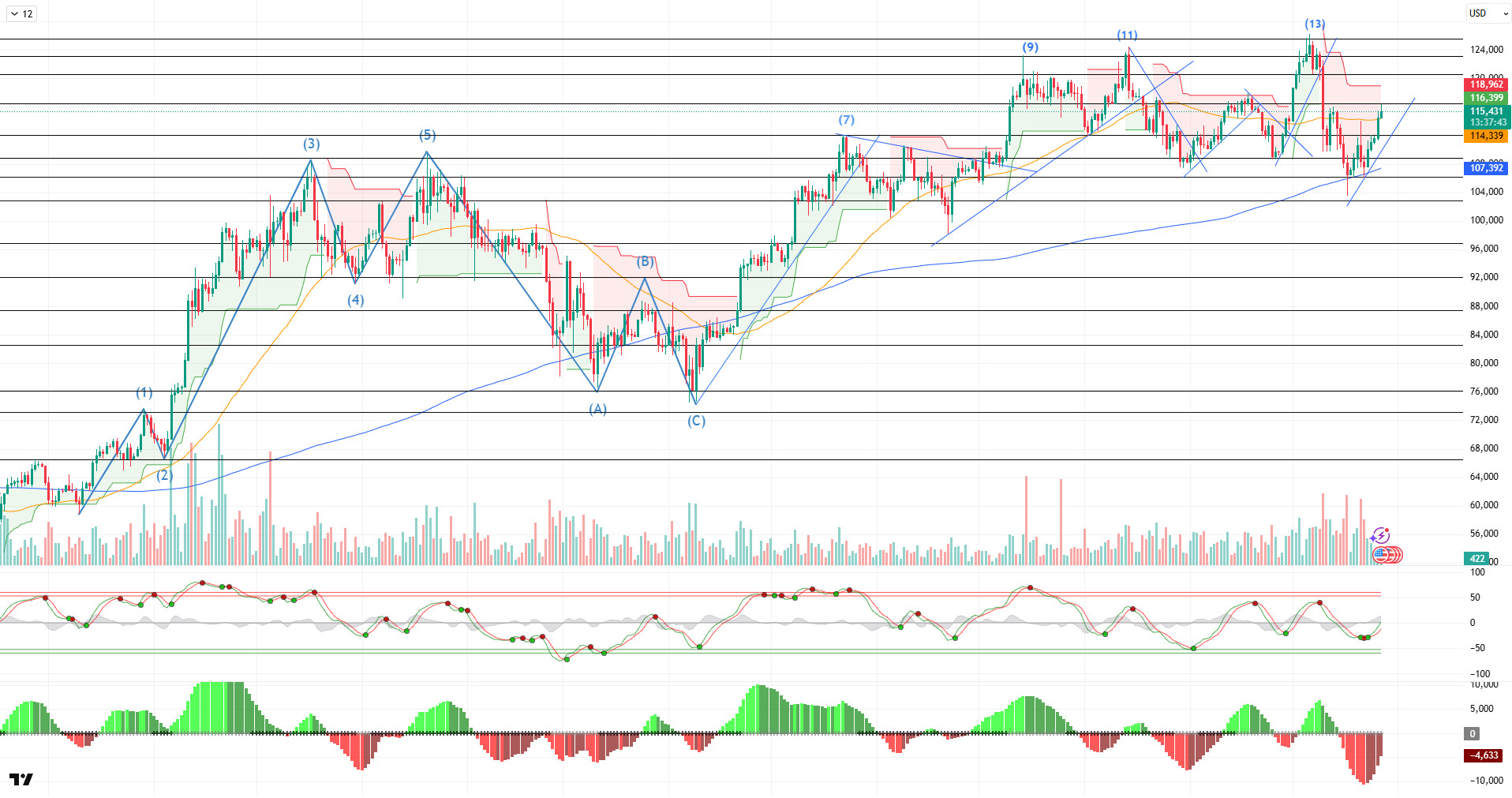 Following all these developments, looking at the daily technical outlook, BTC reached its 13th point with its golden cross formation and pushed its ATH level to 126,200. After consolidating in this region for a while, BTC failed to hold on and lost the 115,000 and then 110,000 levels, returning to the levels it had previously hit and testing the 103,300 (SMA 200) level. The price then managed to recover with the upward channel it formed and returned to the 115,000 level. BTC is set to close the week with a 6.13% increase, and its October return rate has turned positive again.