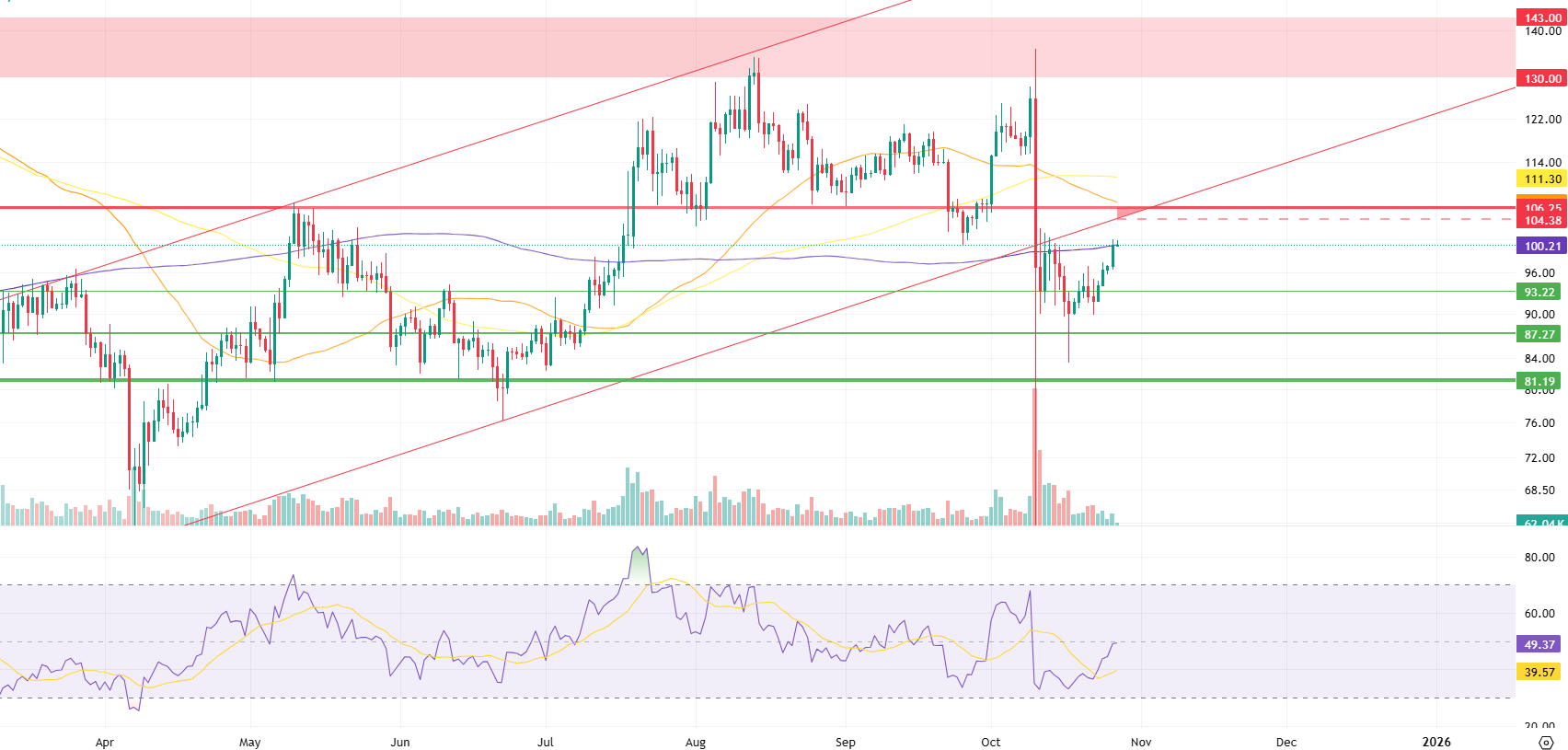 In downward movements, the first minor support is at the $93.22 level. This area, having been a zone where the price has reacted several times in the past, can be monitored as the first line of defense where short-term buyers may re-enter. If this support is broken, the $87.27 level will be the second and stronger support position that could limit the decline. In a deeper pullback, the $81.19 level stands out as a critical threshold. This level is an important area, both because it has been the location of many medium-term bottoms in the past and because weekly moving averages could bring buyers back into play. If the retest attempt from the rising channel’s lower band fails, a pullback to $81.19 could present new buying opportunities for spot market investors and create a suitable environment for profit-taking on existing short positions.