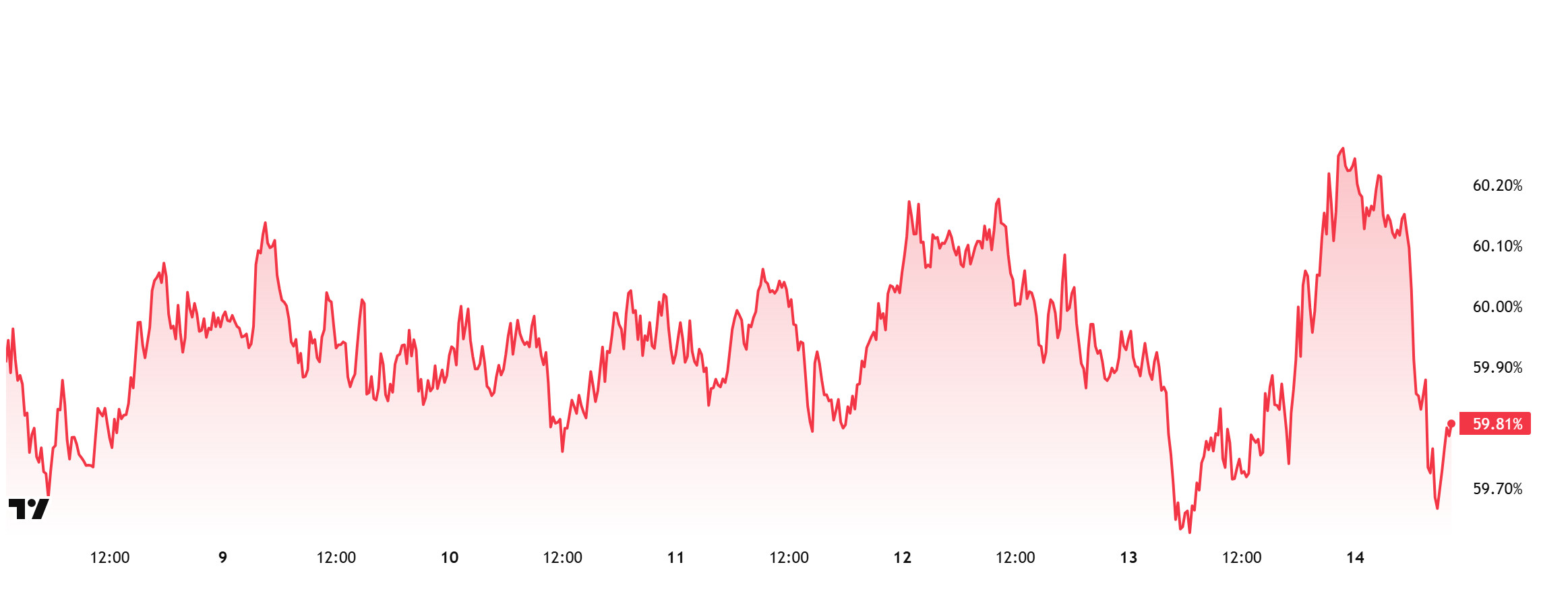 Bitcoin dominance started the week at 59.90%. Although it rose to 60.25% during the week, it subsequently retreated slightly and is currently at 59.81%.
