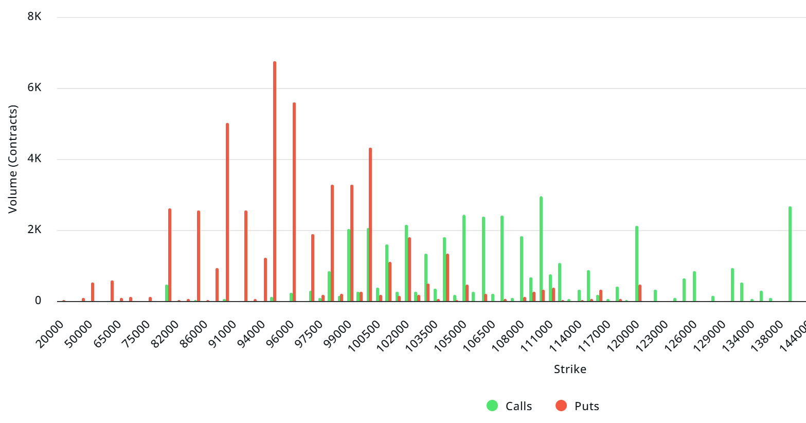 Laevitas Data: Examining the chart, we see that put options are concentrated in a wide band between $80,000 and $100,000. Call options, on the other hand, are concentrated between $99,000 and $120,000, with concentration decreasing towards higher levels. At the same time, the $100,000 level appears to be resistance, while the $95,000 level appears to be support. On the other hand, there are 6.7K put options at the $95,000 level, peaking here, with a decrease in put volume observed after this level. Furthermore, 2.96K call option contracts peak at the $110,000 level. Looking at the options market, we see that put contracts dominate on a daily and weekly basis.