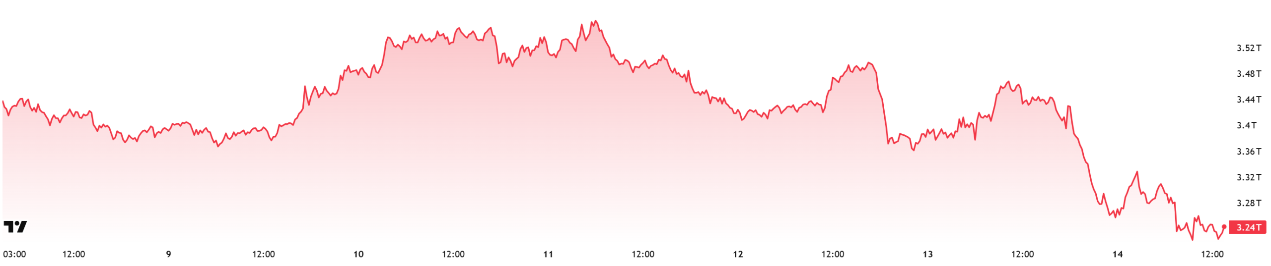 This week, the cryptocurrency market lost approximately $245 billion in value, declining by 7% and bringing the total market cap down to $3.24 trillion. The weekly high was recorded at $3.59 trillion, while the lowest level was $3.19 trillion. Thus, the market was observed to move within a band of approximately $395 billion. This indicates a volatility of approximately 12.37% on a period basis. Although a narrower band formed compared to the 14.78% range seen last week, the crypto market still showed significant volatility, corresponding to the average weekly candle size.