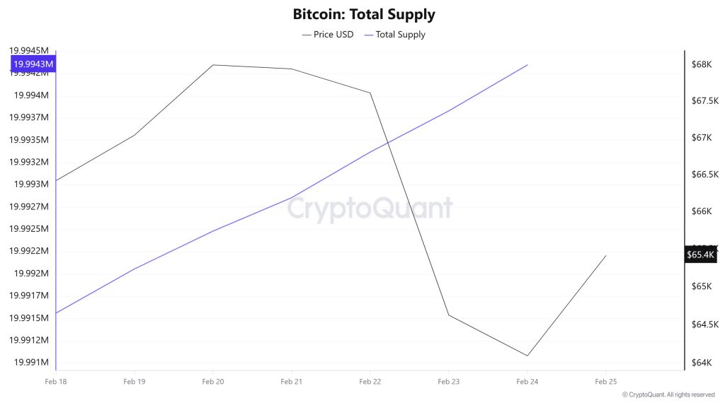Between February 18 and 24, 2026, Bitcoin reserves on exchanges rose from 2,745,599 BTC to 2,769,188 BTC, resulting in a net inflow of 23,589 BTC. During this period, reserves increased by approximately 0.86%, while the BTC price fell from $66,837.6 to $62,900, losing 5.89% of its value.