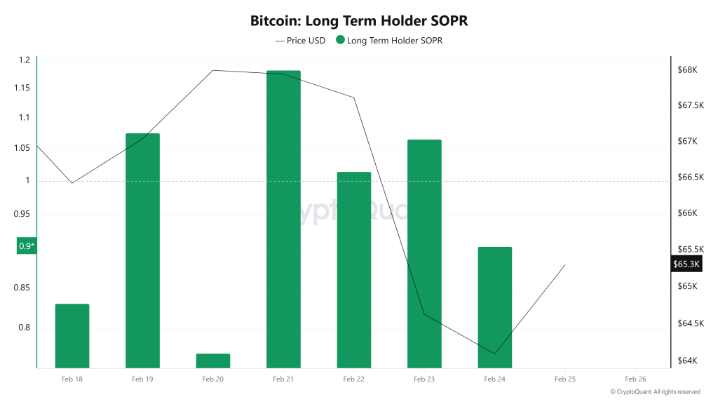 On the Bitcoin side, the Long-Term Holder SOPR indicator shows a volatile but generally weak outlook this week. According to the chart, the metric fluctuated above and below the 1 level during the week and is now trading close to closing below 1 (around 0.90).