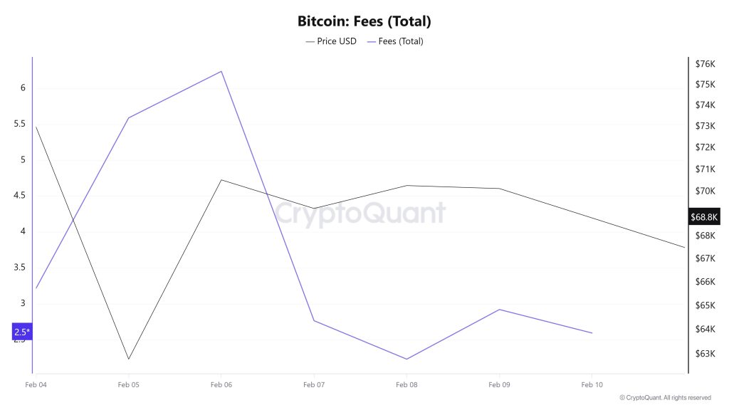 Similarly, when examining the Bitcoin Fees (Total) data for the period between February 4 and 10, it is observed that the indicator reached 3.21760022 on February 4, the first day of the week.
