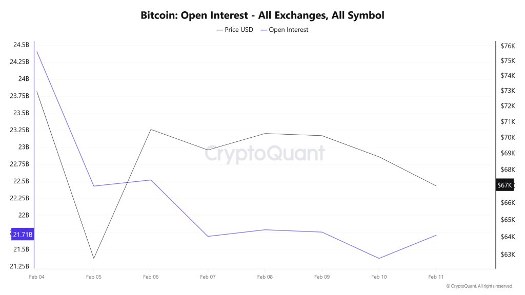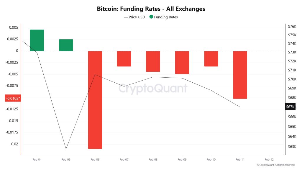 On February 4, the funding rate was briefly positive but quickly turned negative and fell sharply into negative territory on February 6. This outlook indicates that short positions are dominant in the market. In the following days, the funding rate remained negative, but the severity of the decline decreased.