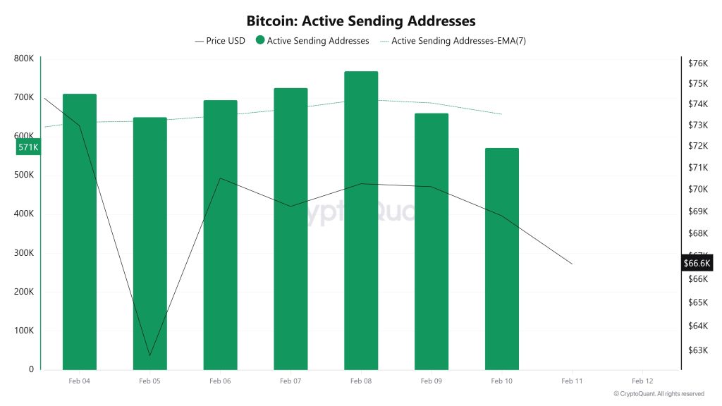 Between February 4 and February 11, an upward trend was observed in the active sending addresses metric. On the day the price reached its highest level, this metric stood at 769,246, indicating that user activity on the Bitcoin network was moving in parallel with the price. This data shows that the $70,000 level is supported not only by price but also by on-chain address activity. Overall, the Active Sending Addresses metric has followed a high trajectory during this period.